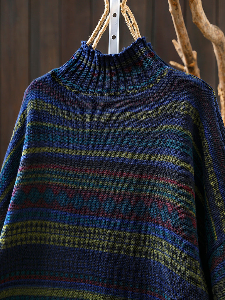 Kvinder Efterår Vintage Stribet Halv-Turtleneck Sweater