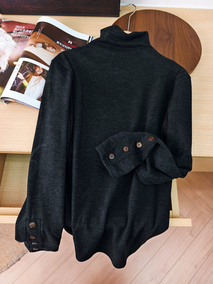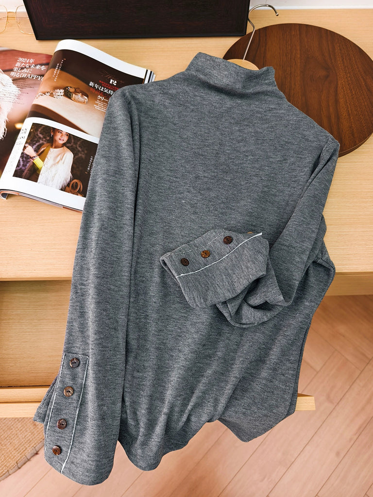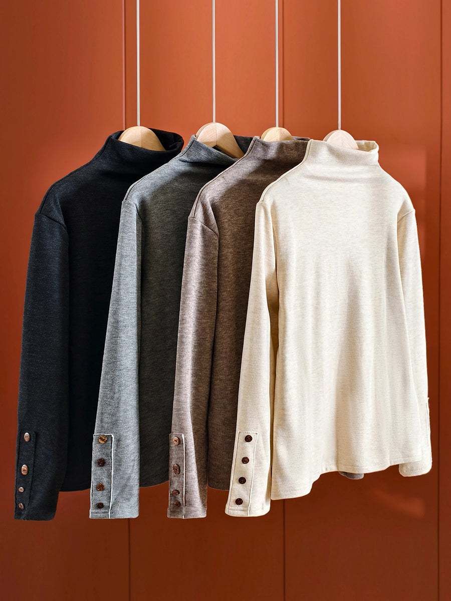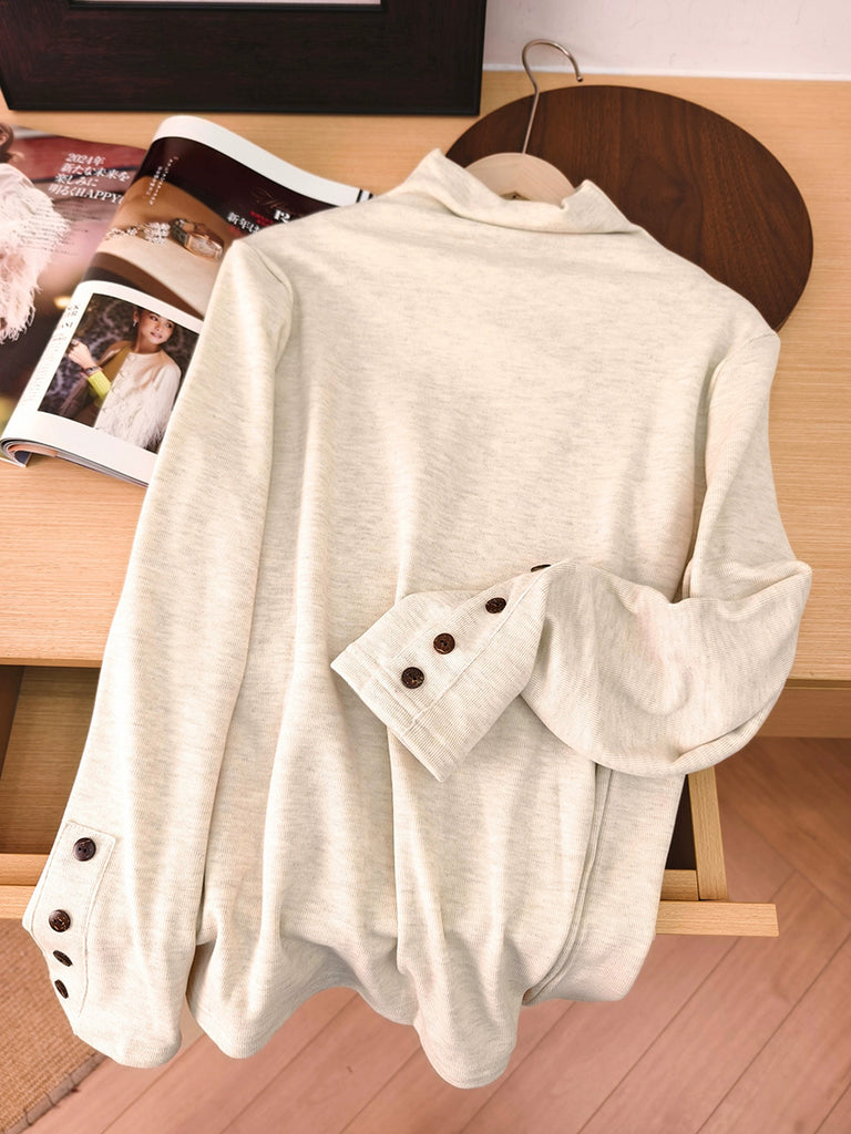 Kvinder Casual Efterår Ren Farve Bomuld Rullekravebluse