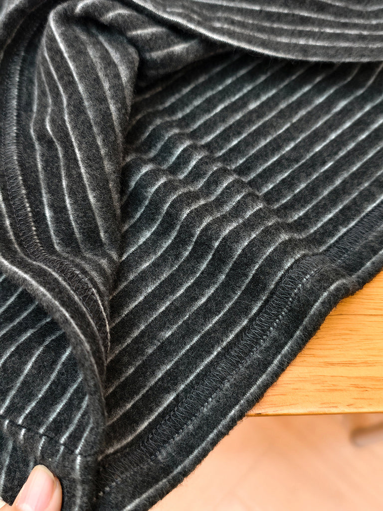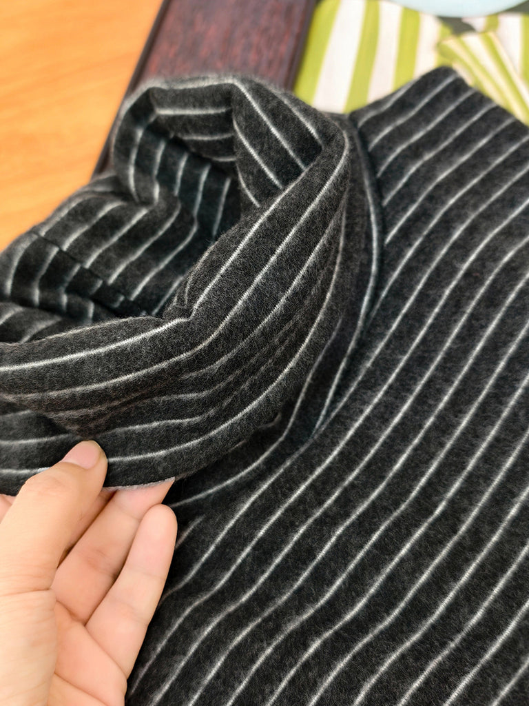 Denne vinterbeklædning er fremstillet af en førsteklasses blanding af 62,5% bomuld, 33,5% polyester og 4% spandex og leverer både komfort og holdbarhed. Det klassiske stribemønster passer perfekt til en raffineret rullekrave, mens almindelige ærmer i fuld længde giver fuld dækning. Designet med en afslappet, casual æstetik, går den ubesværet fra efterår til vinter, hvilket gør den til et alsidigt supplement til enhver sæsonbestemt garderobe.