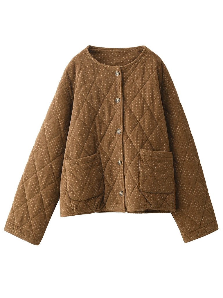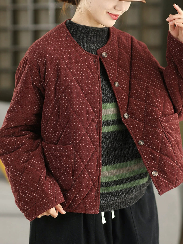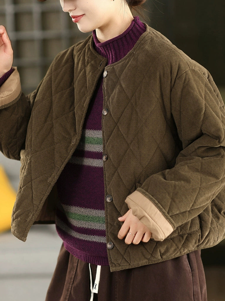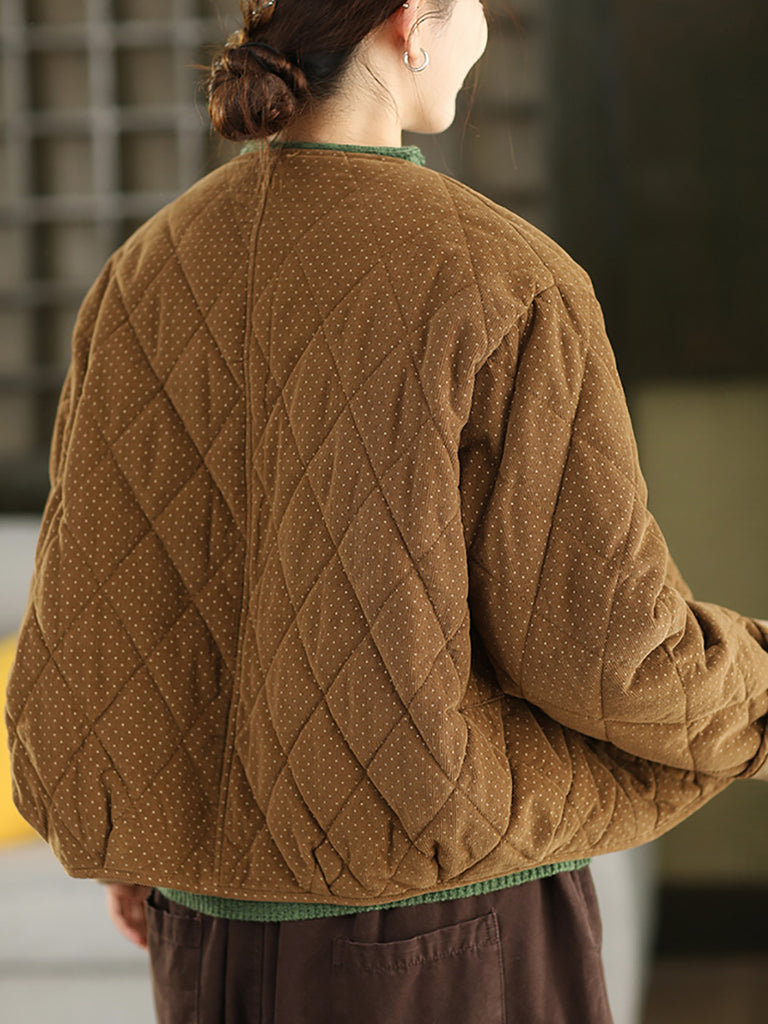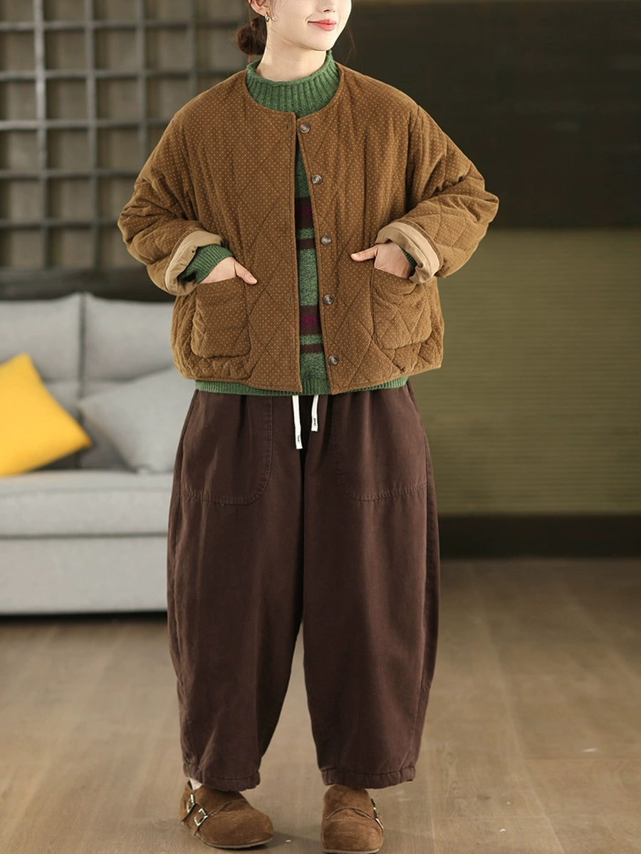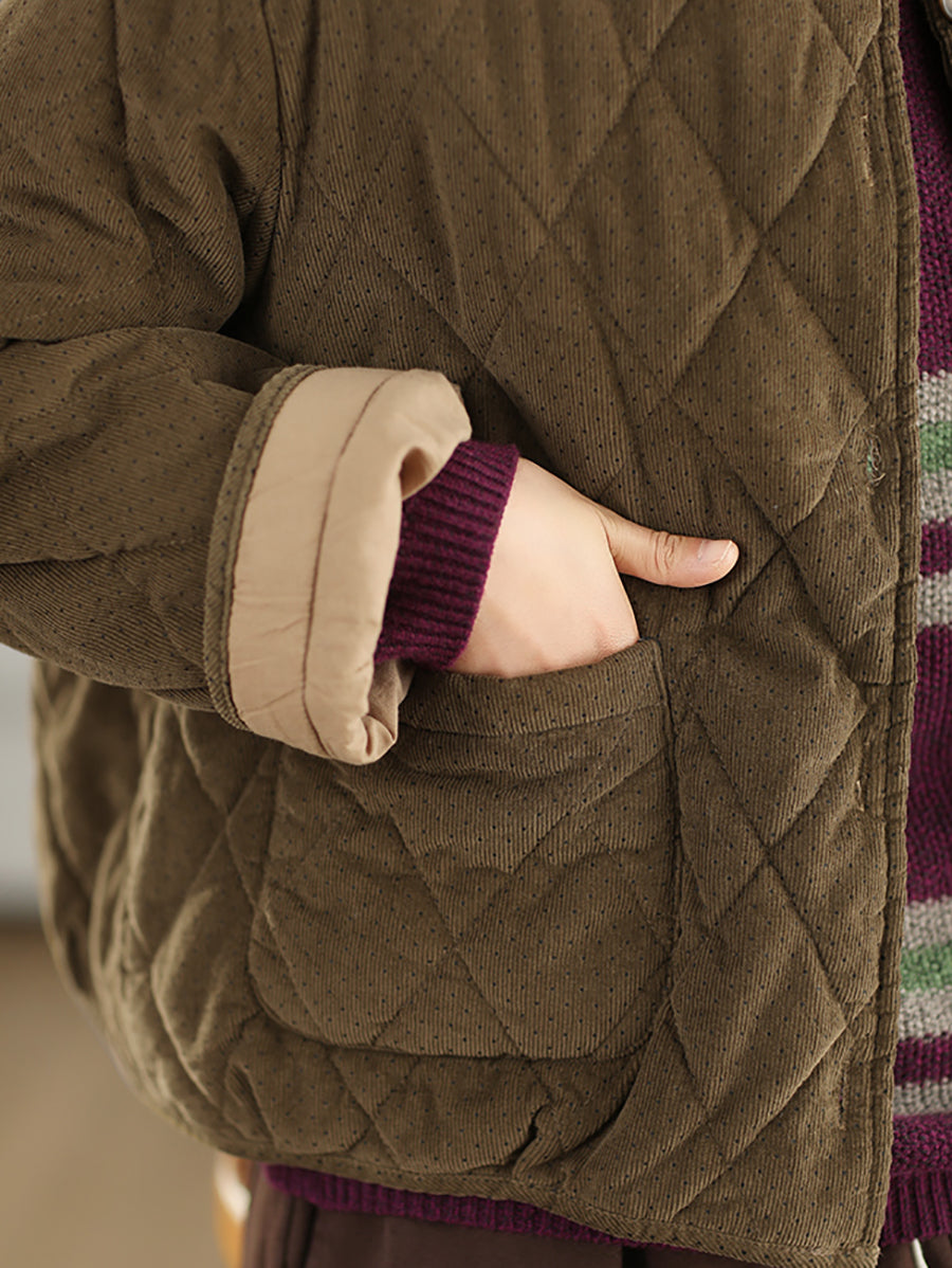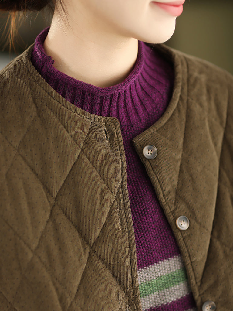 Kvinder Vinter Retro Prikket O-hals Corduroy Polstret Jakke