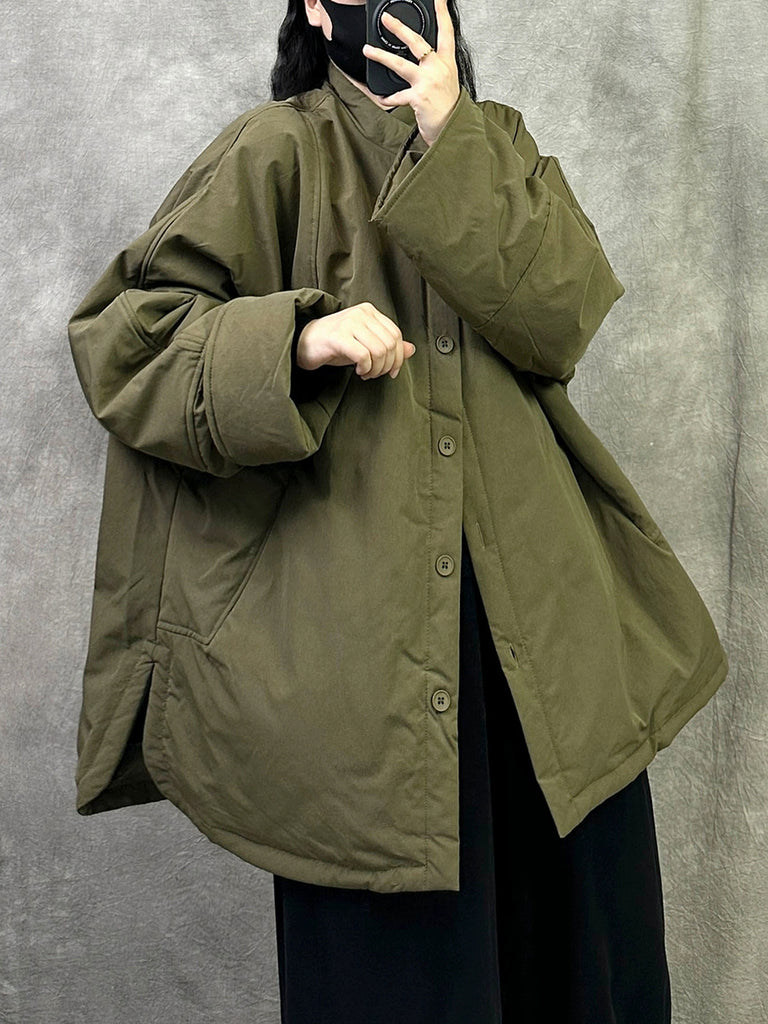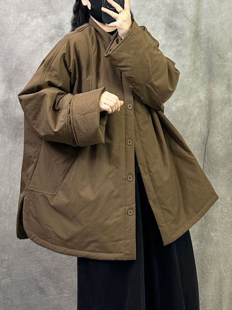 Dame Vintage Vinter Fleece Hørfrakke med Stand Collar