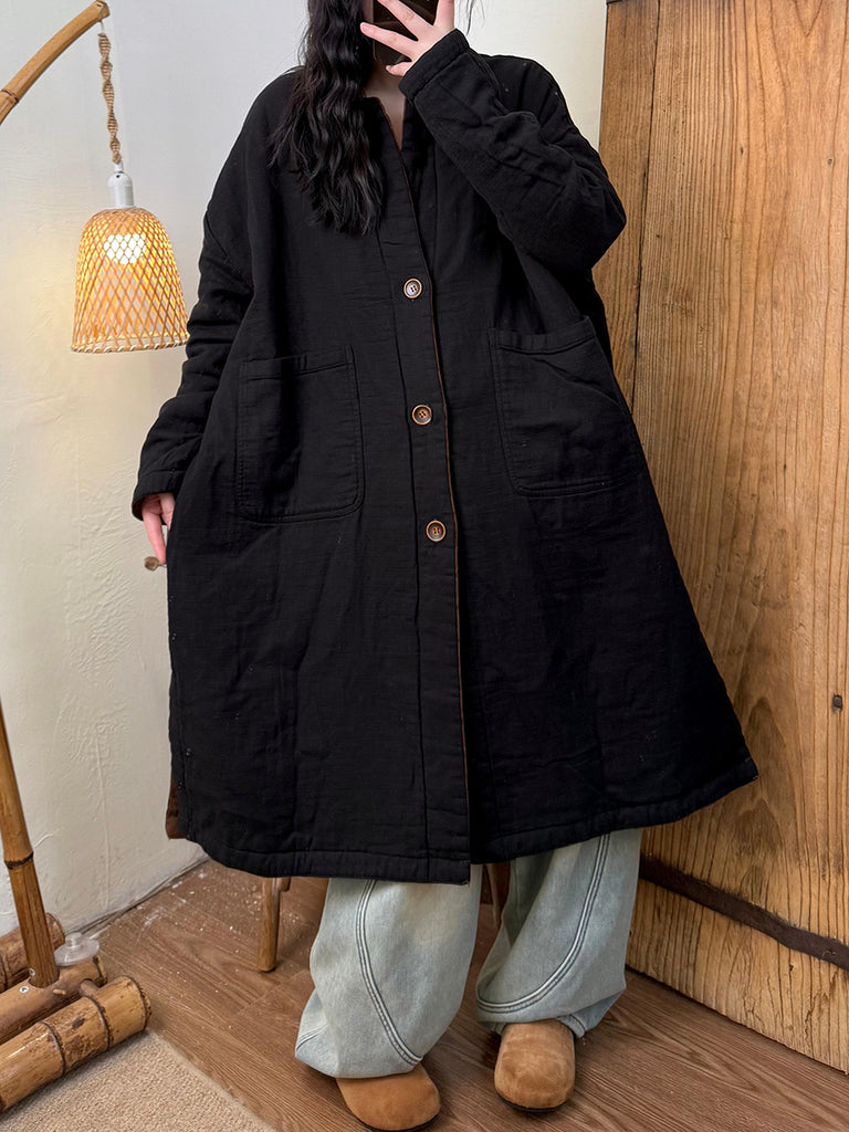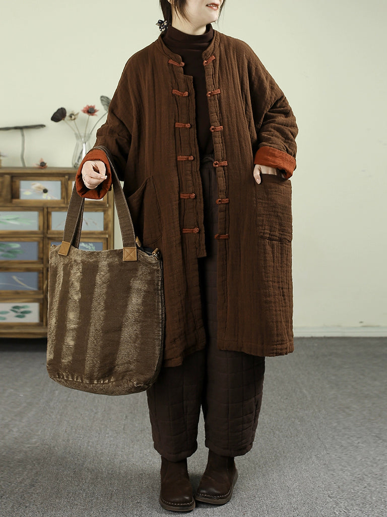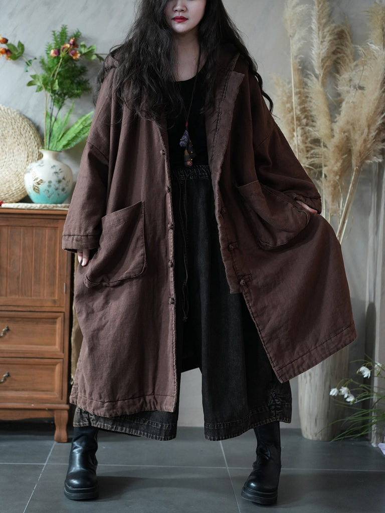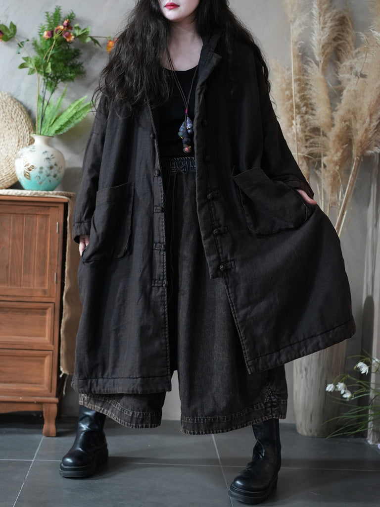 Dame Vintage Vinterfrakke i 100% Linned med Standkrave