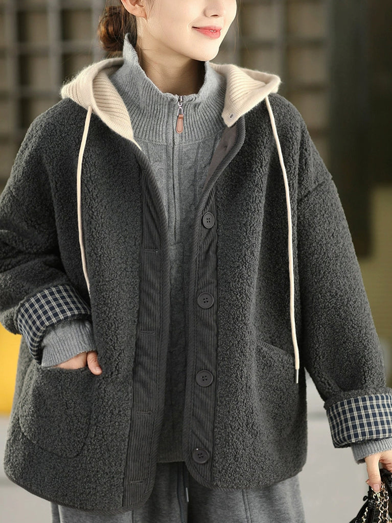 Kvinder Vinter Fleece Denim Hættetrøje med Dobbelt Side