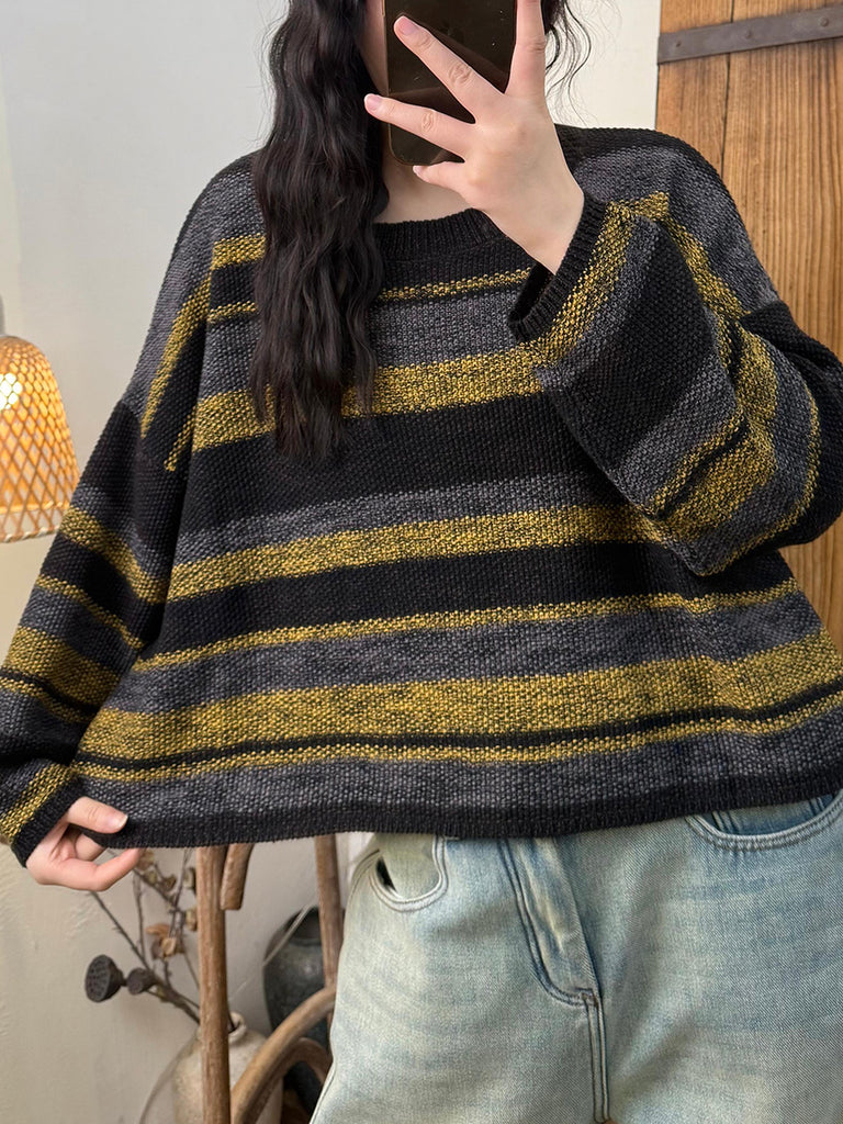 Kvinder Efterårs Retro Stribet O-hals Sweater