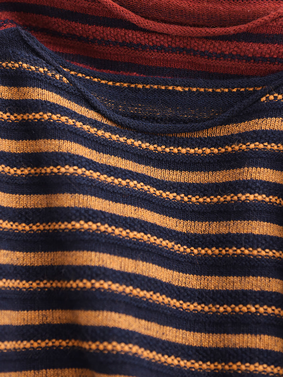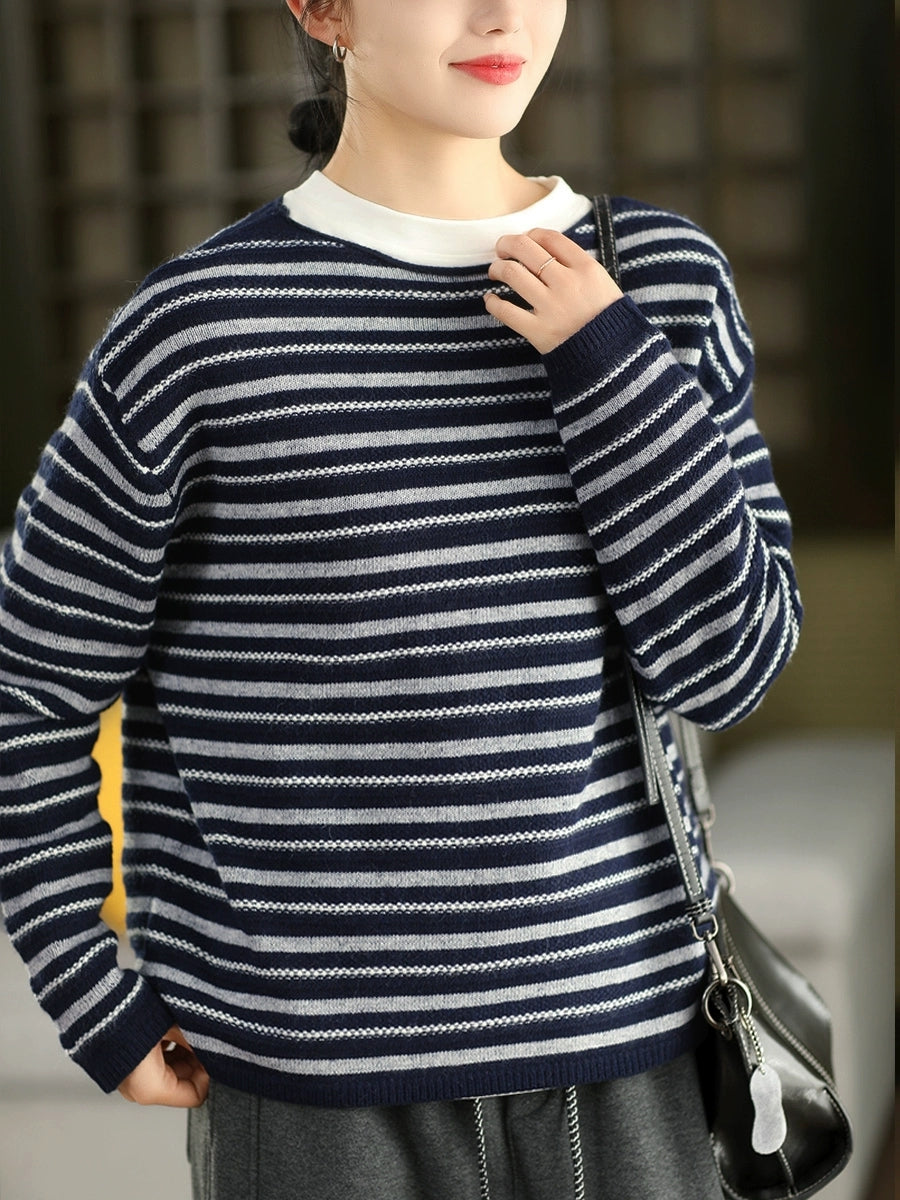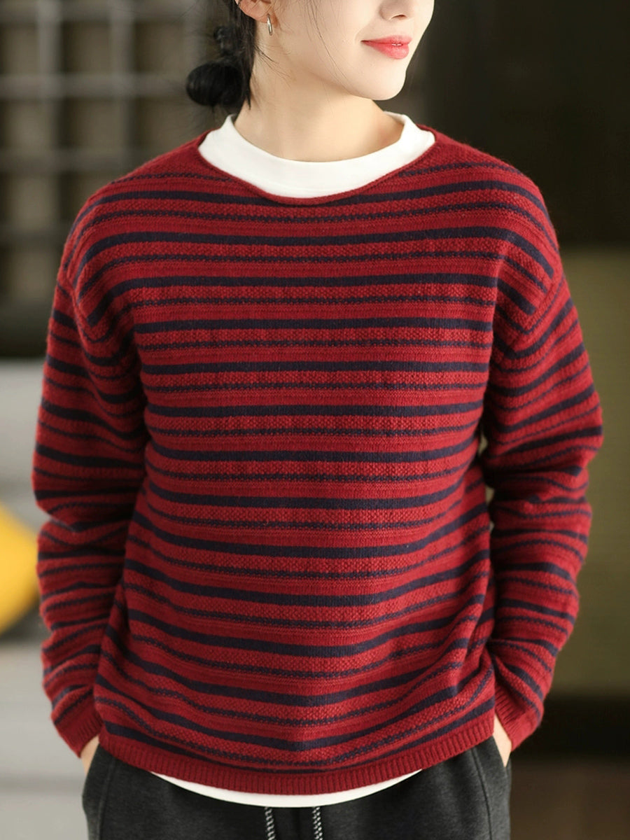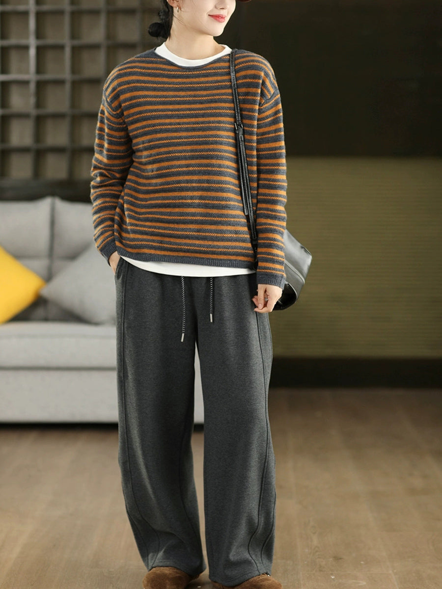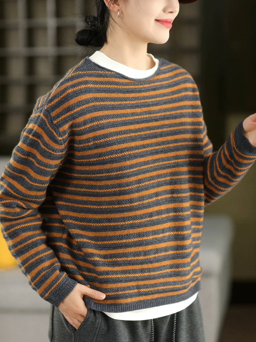 Kvinder Efterår Vintage Stribet Strikket O-hals Sweater