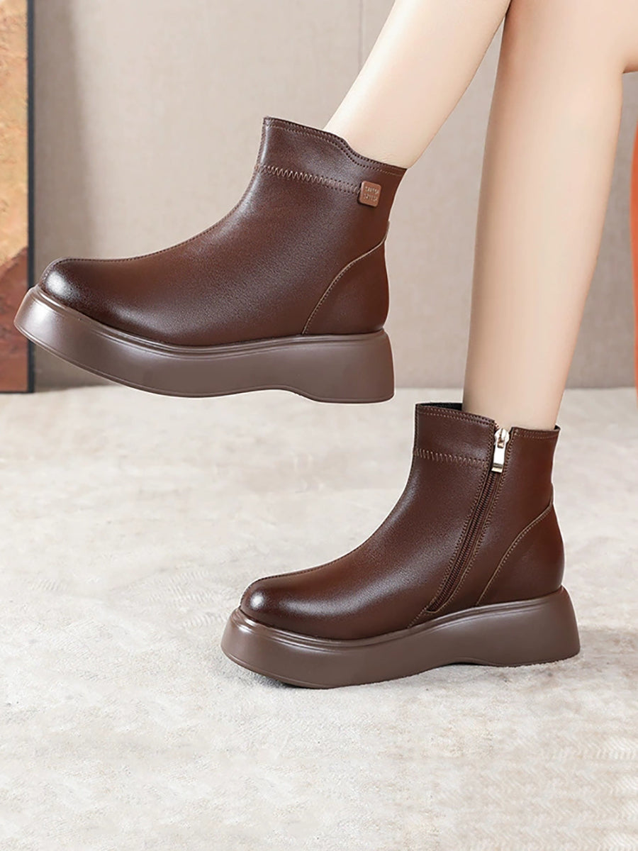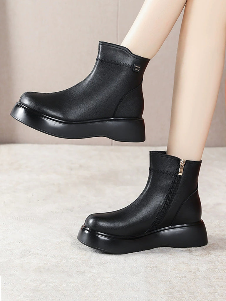 Kvinder Casual Ren Farve Spliced Platform Ankelstøvler