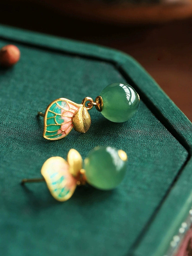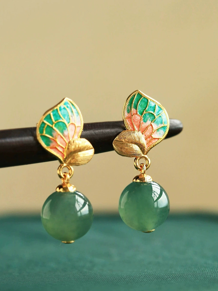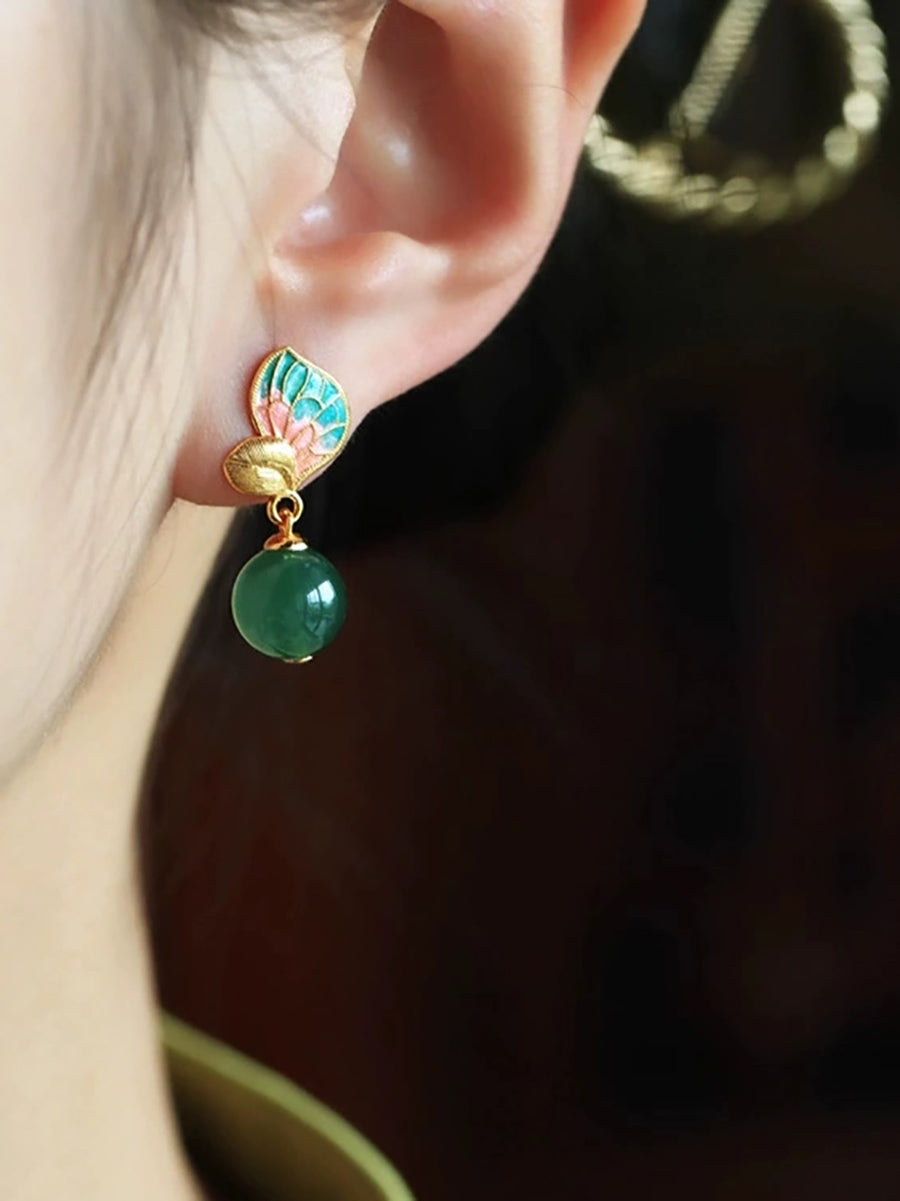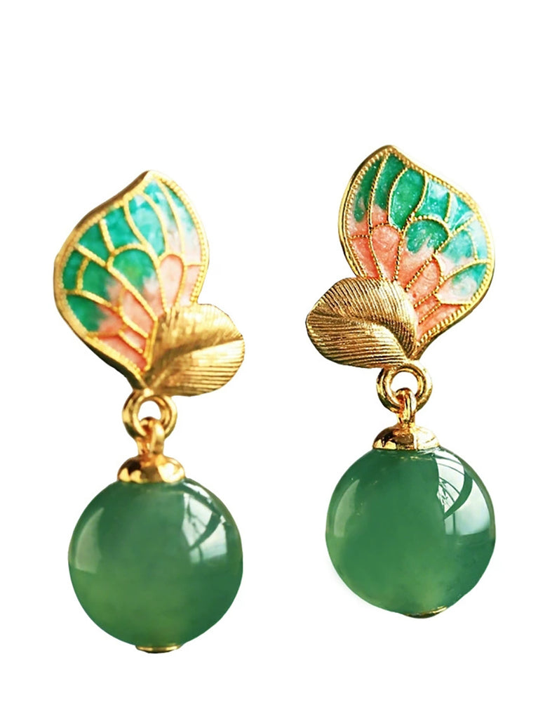Kvinder Vintage Cloisonne Jade Kobber Øreringe