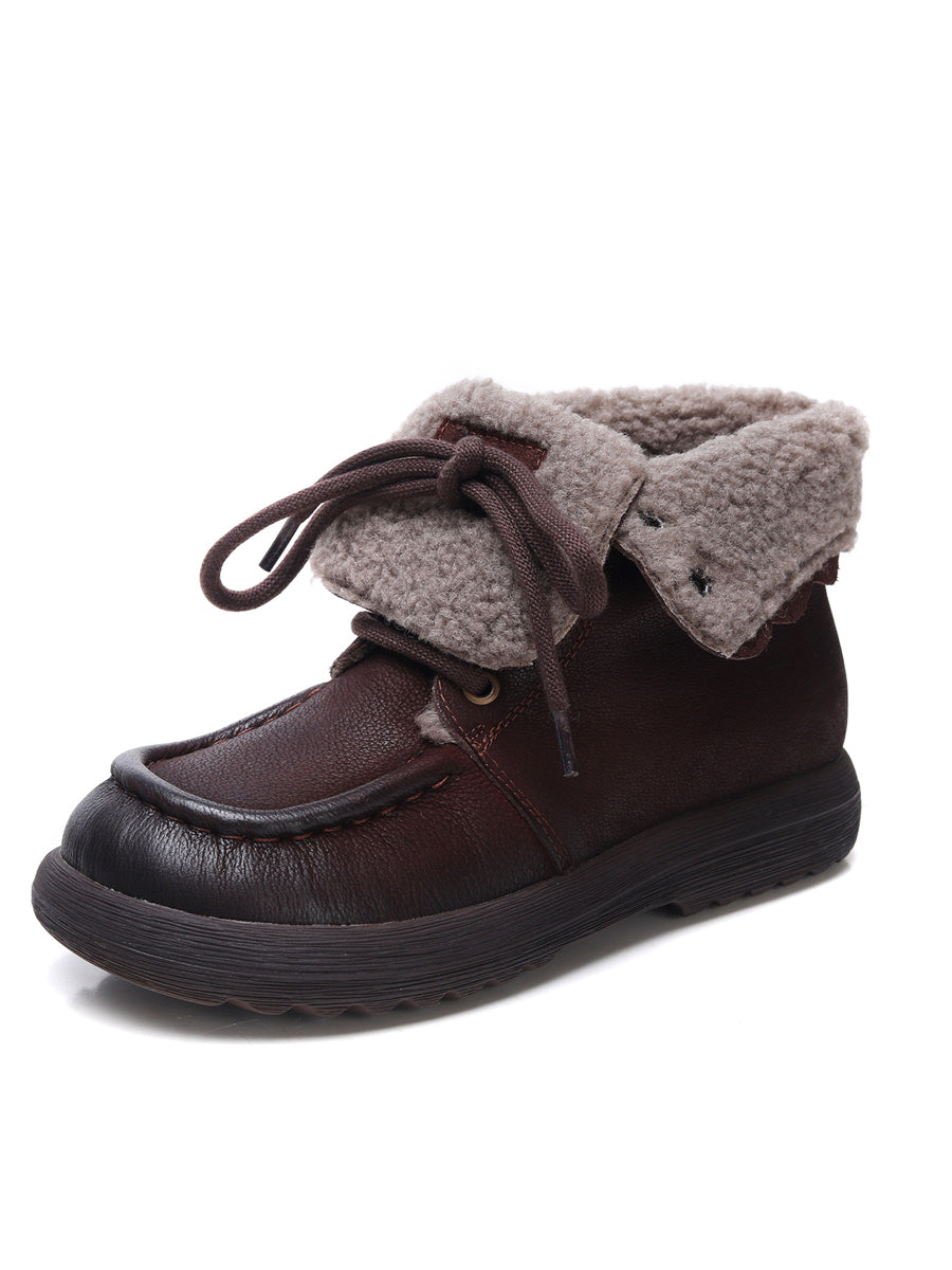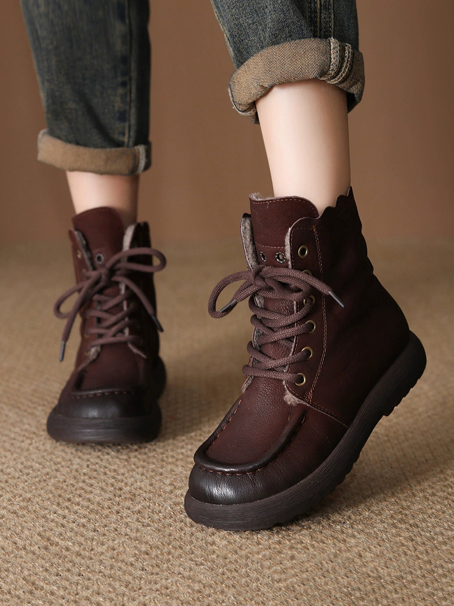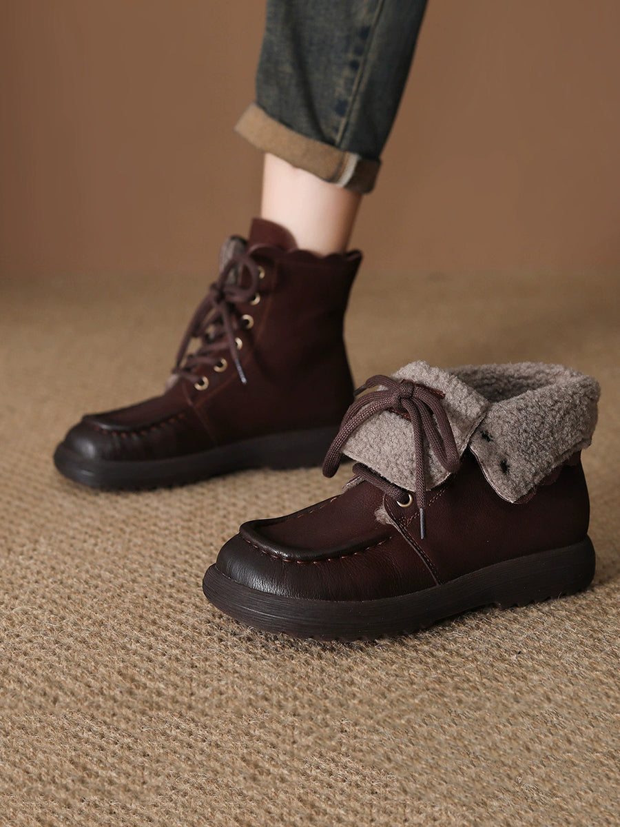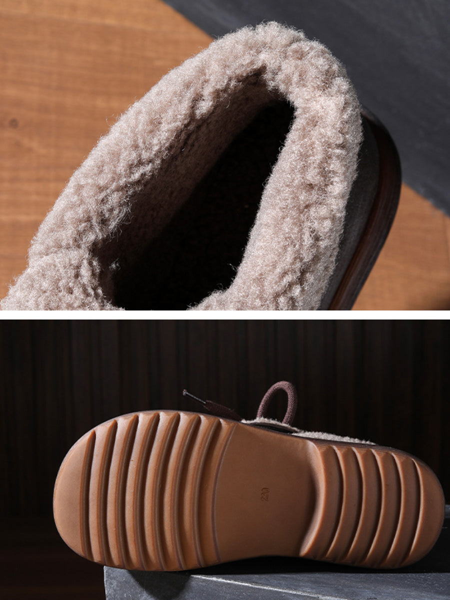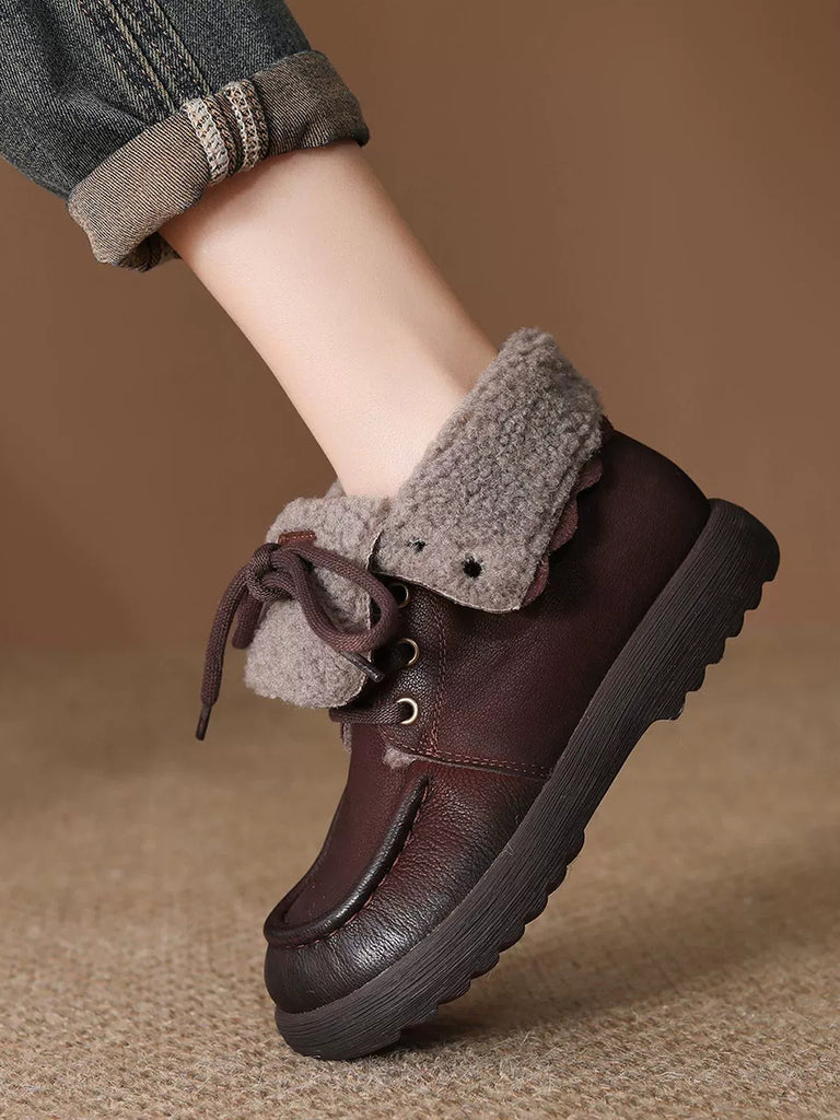Kvinders vinterstøvler med fleecefor i ægte læder