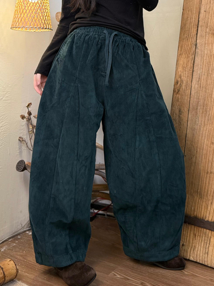 Kvinders afslappede vinterfløjlsbukser med fleecefor