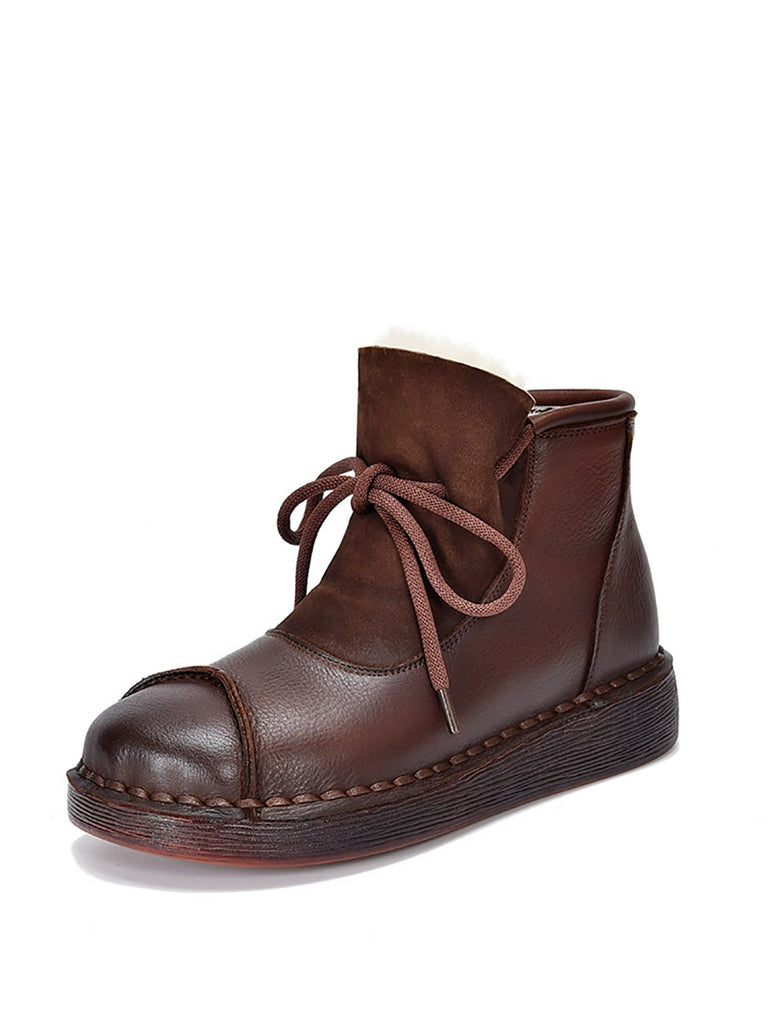 Kvinder Vintage Ægte Læder Spliced Fleeceforede Støvler