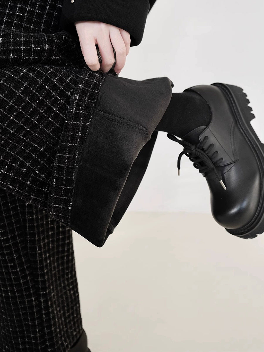 Kvinder Vintage Plaid Fleeceforede Lige Bukser