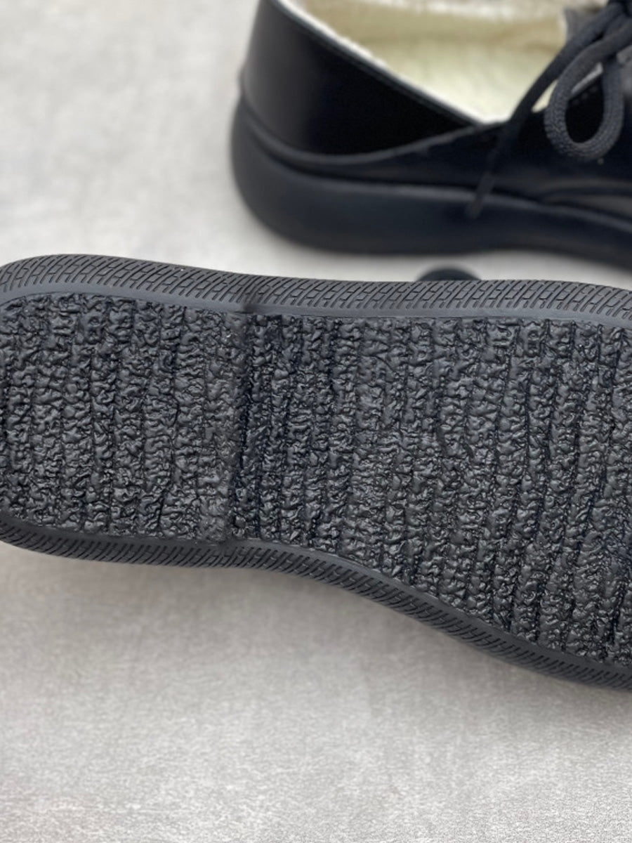 Kvinder Vinter Ægte Læder Fleeceforede Flade Sko