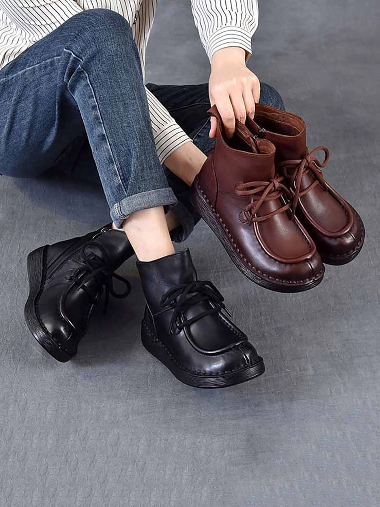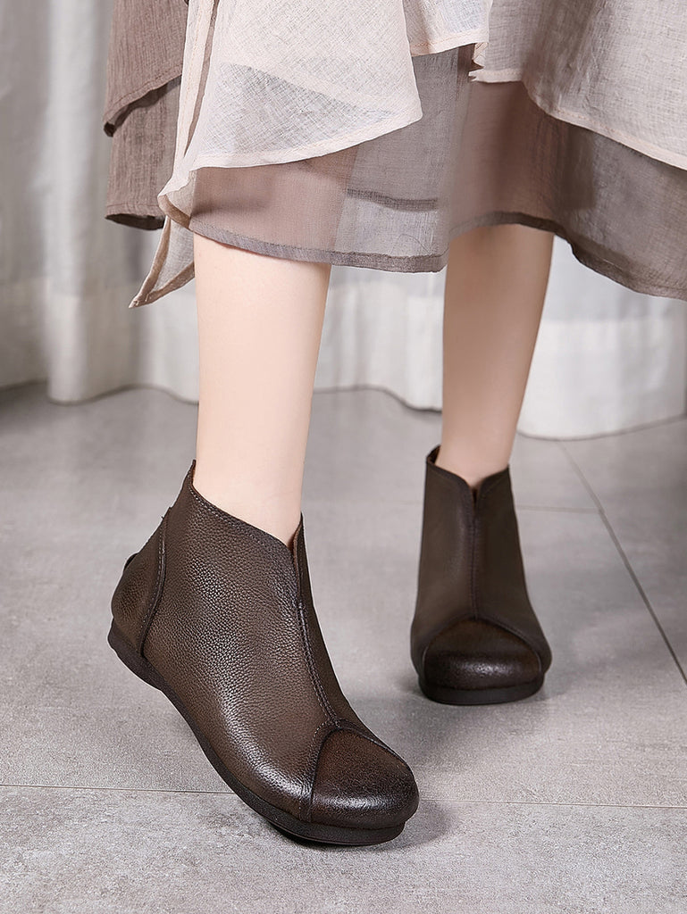 Kvinder Vintage Ren Farvet Læder Spliced Ankelstøvler