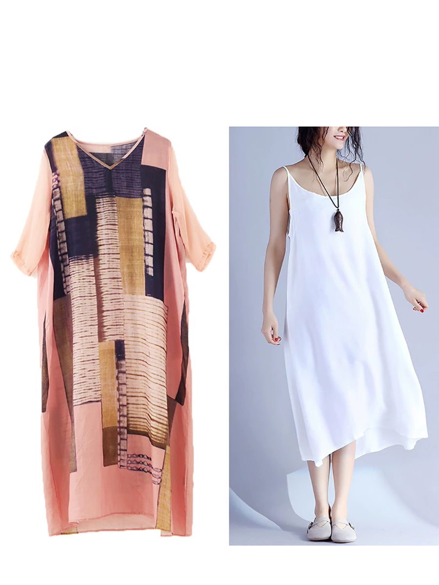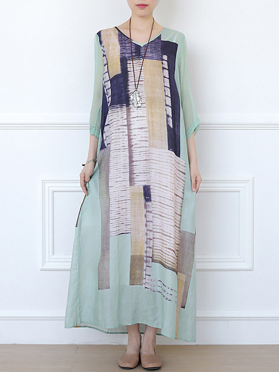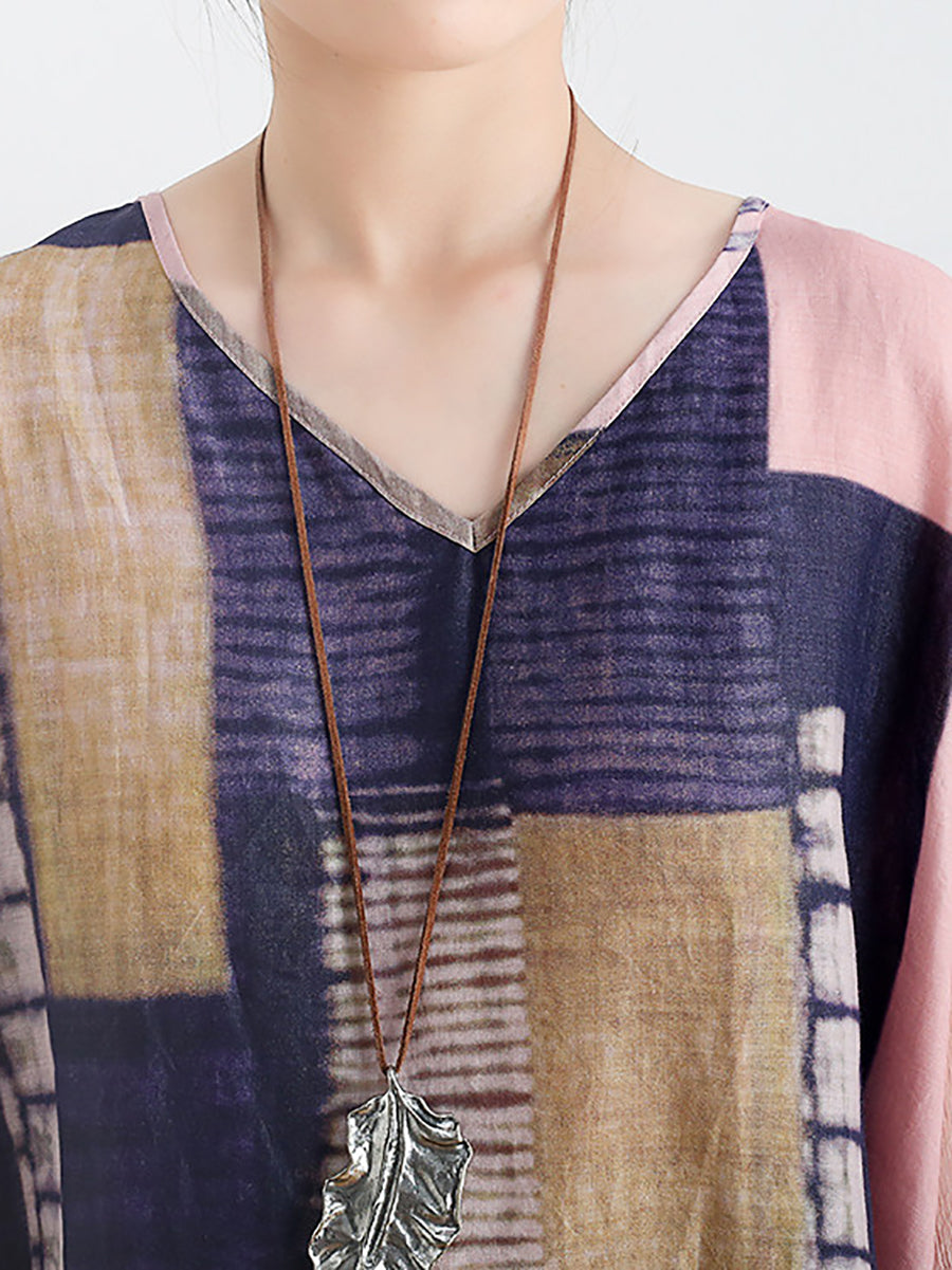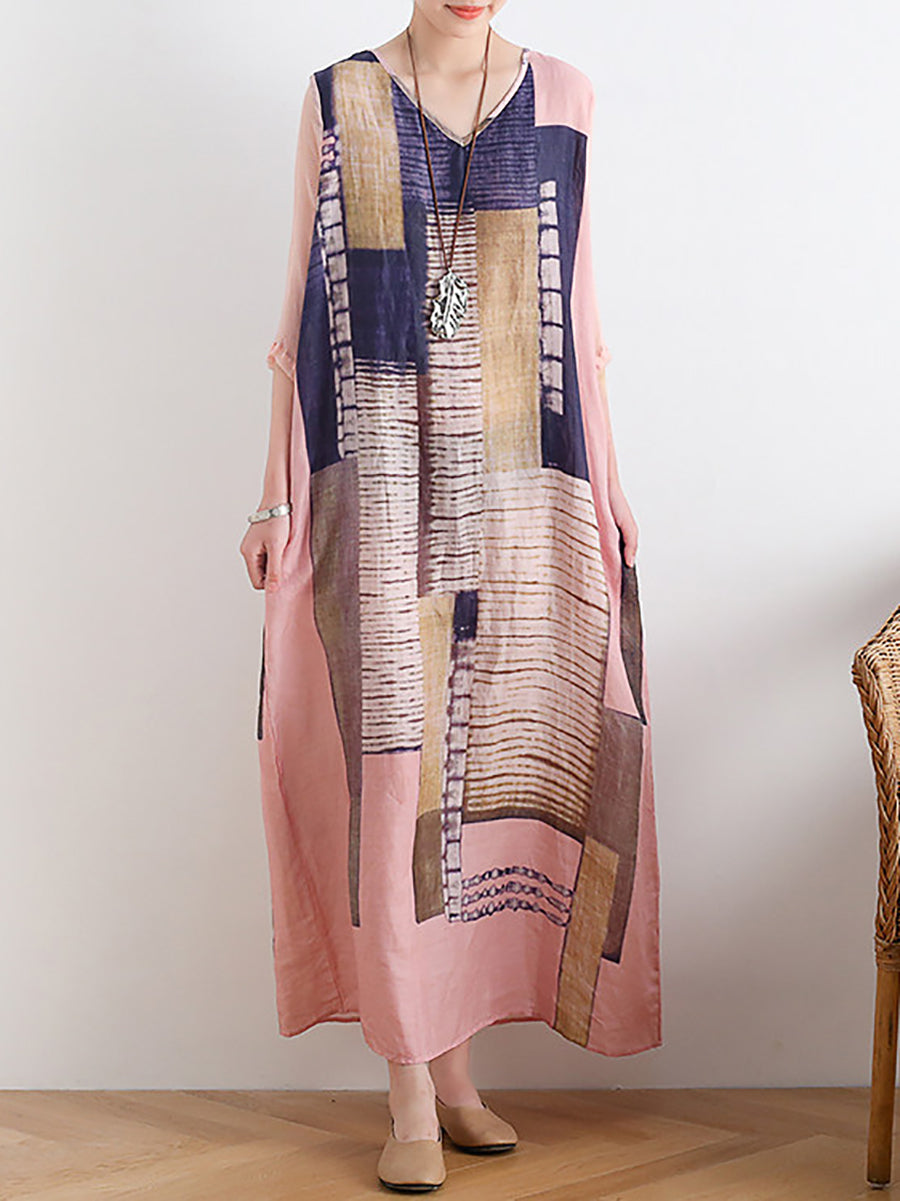 Kvinder Sommer Kunstnerisk Patchwork Ramie O-hals Kjole