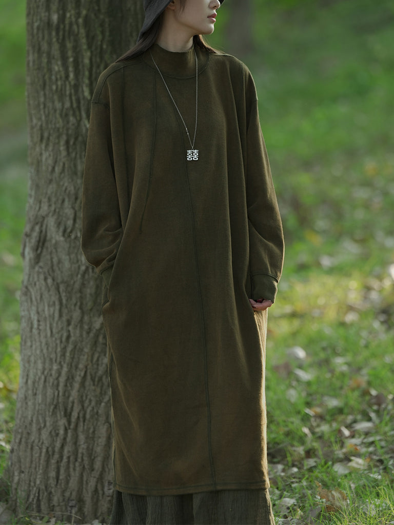 Kvinder Efterår Casual Ren Farve Stand Collar Bomuldskjole