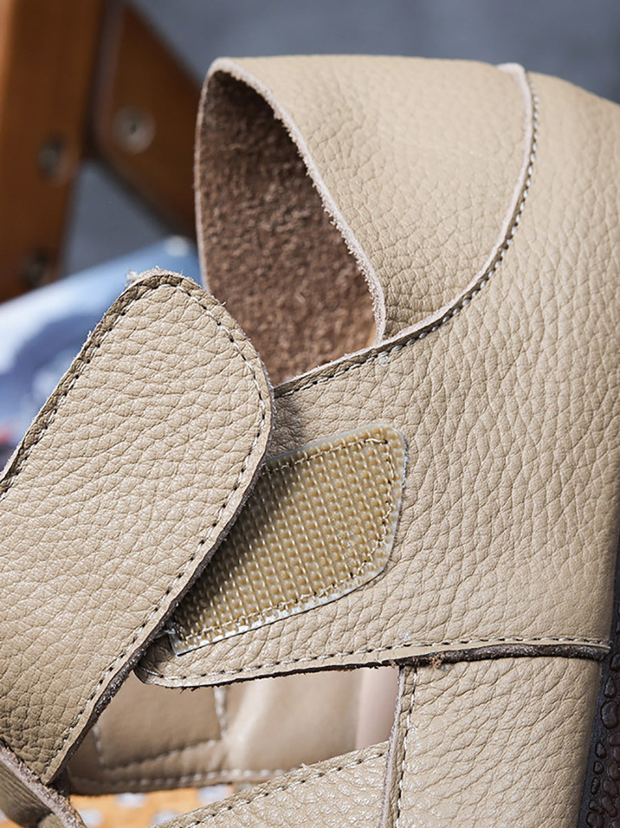 Kvinder Sommer Ren Farve Ægte Læder Spliced Sandaler