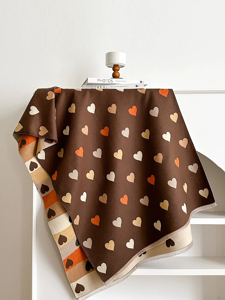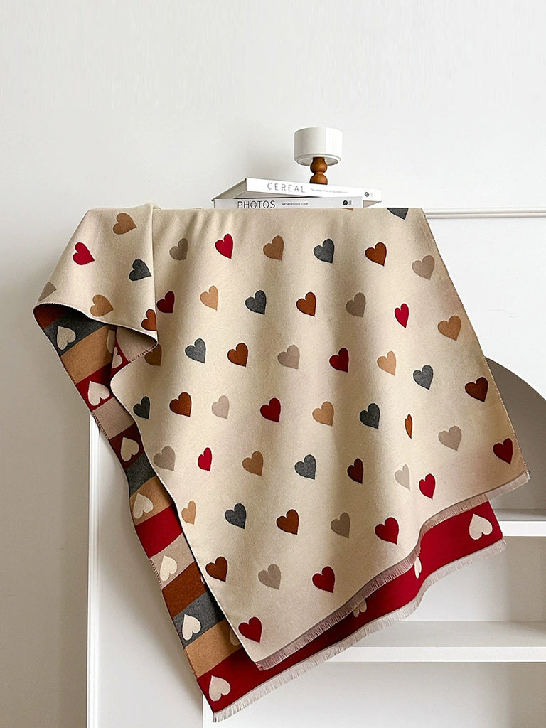 Kvinder Mode Hjerte Stribet Varmt Sjal Halstørklæde