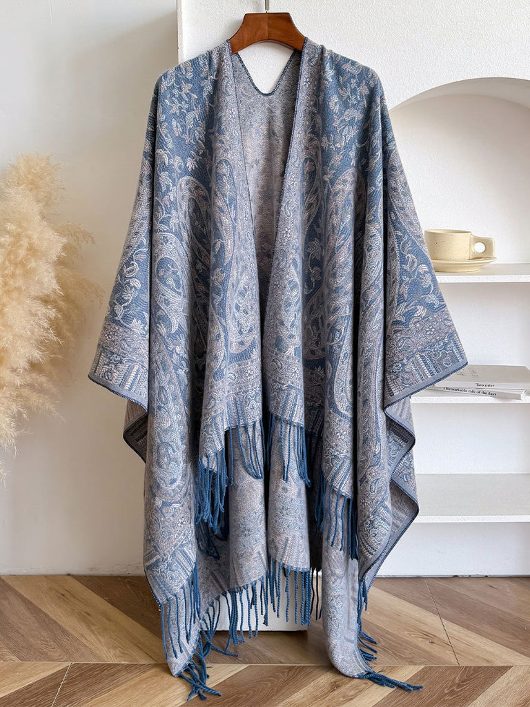 Kvinder Vinter Blomster Jacquard Kvast Sjal