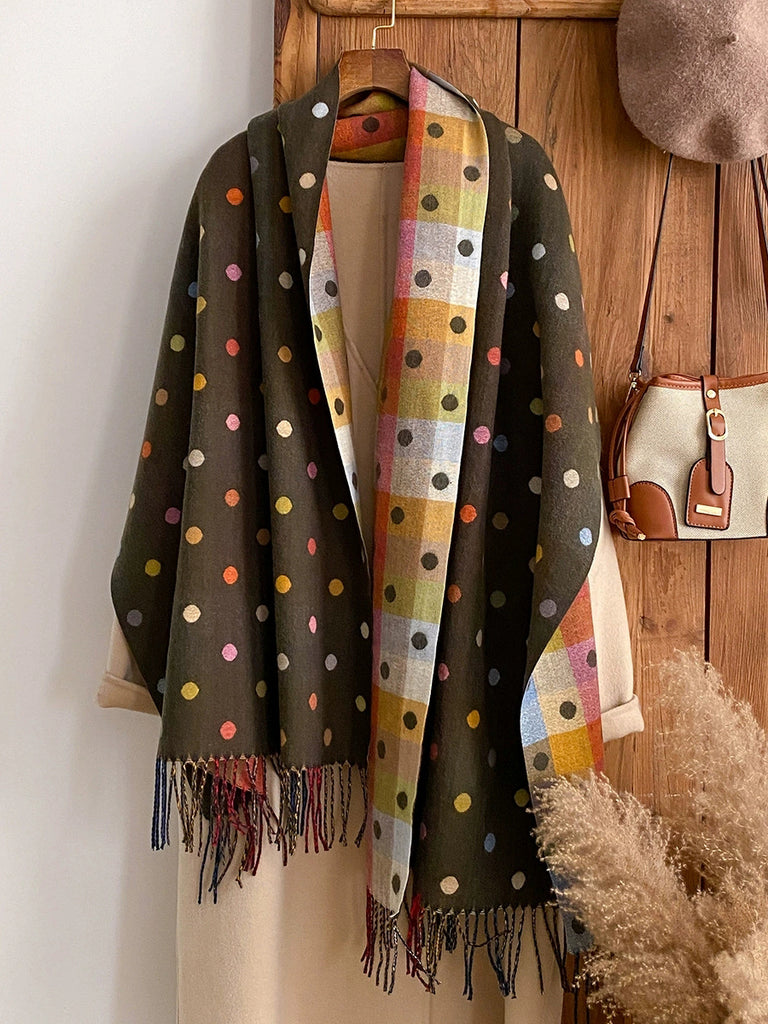 Vinter Etnisk Ternet Kvast Sjal Halstørklæde