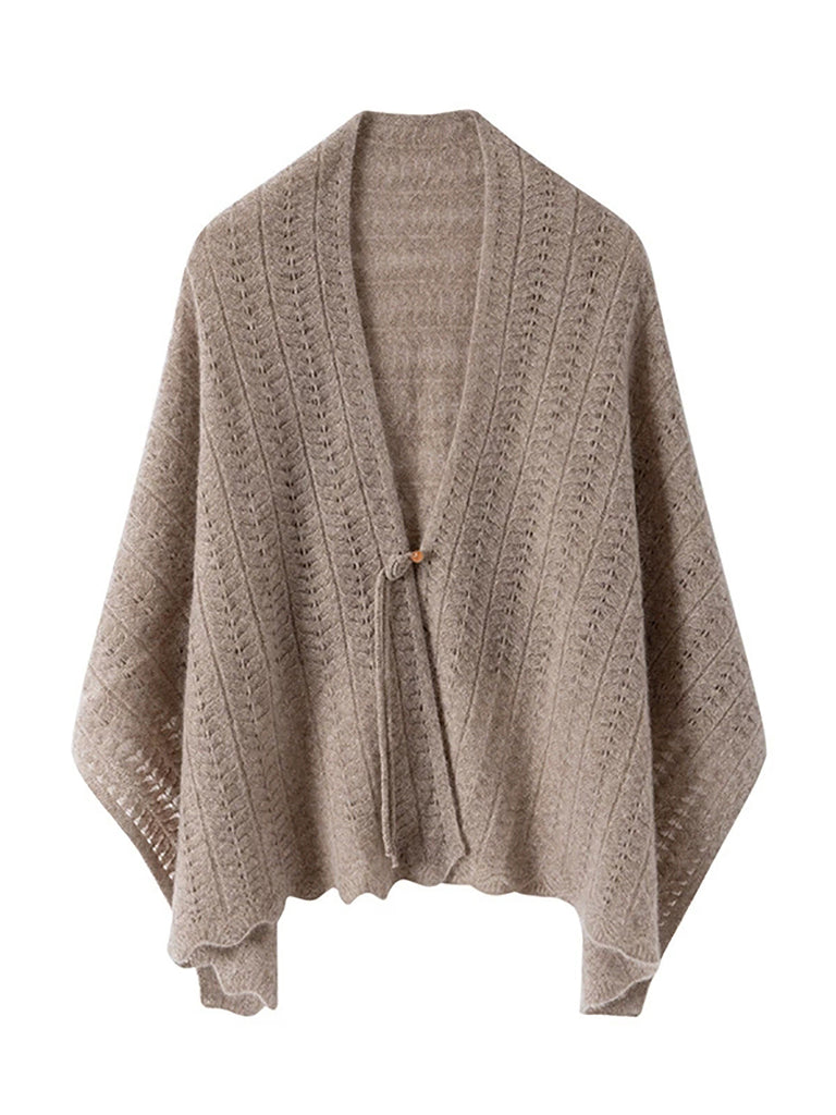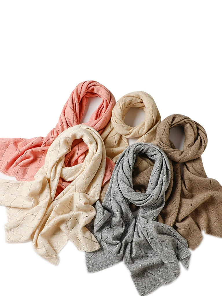 Kvinder Vinter Ren Farve Udhulet Strikket Sjal Halstørklæde