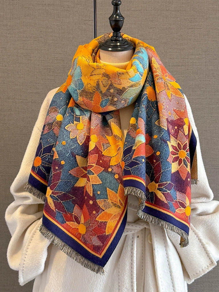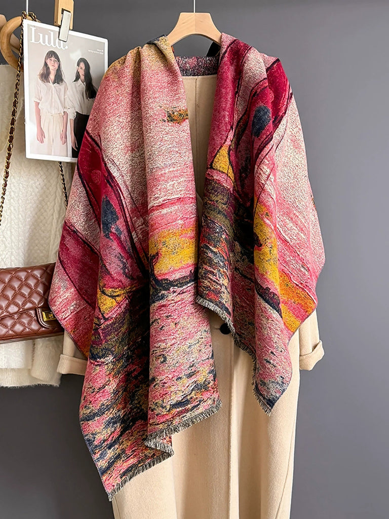 Kvinder Vinterprint Kvast Tykt Sjal Halstørklæde