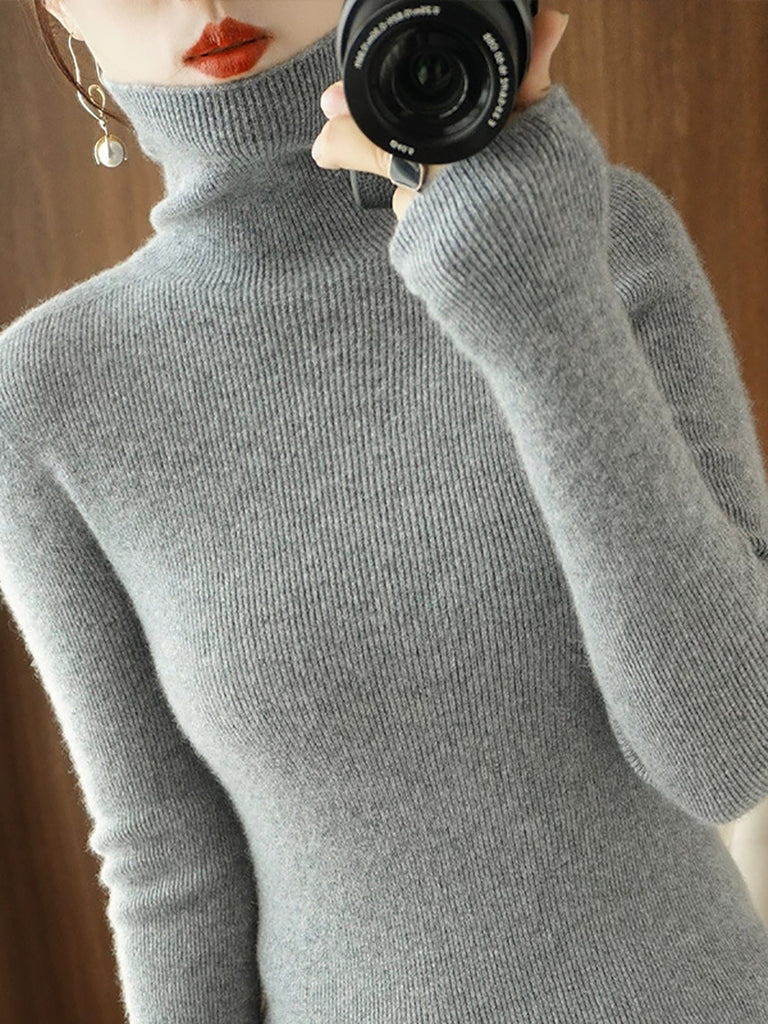 Kvinder Efterår Casual Ren Farve Strikket Rullekravetrøje
