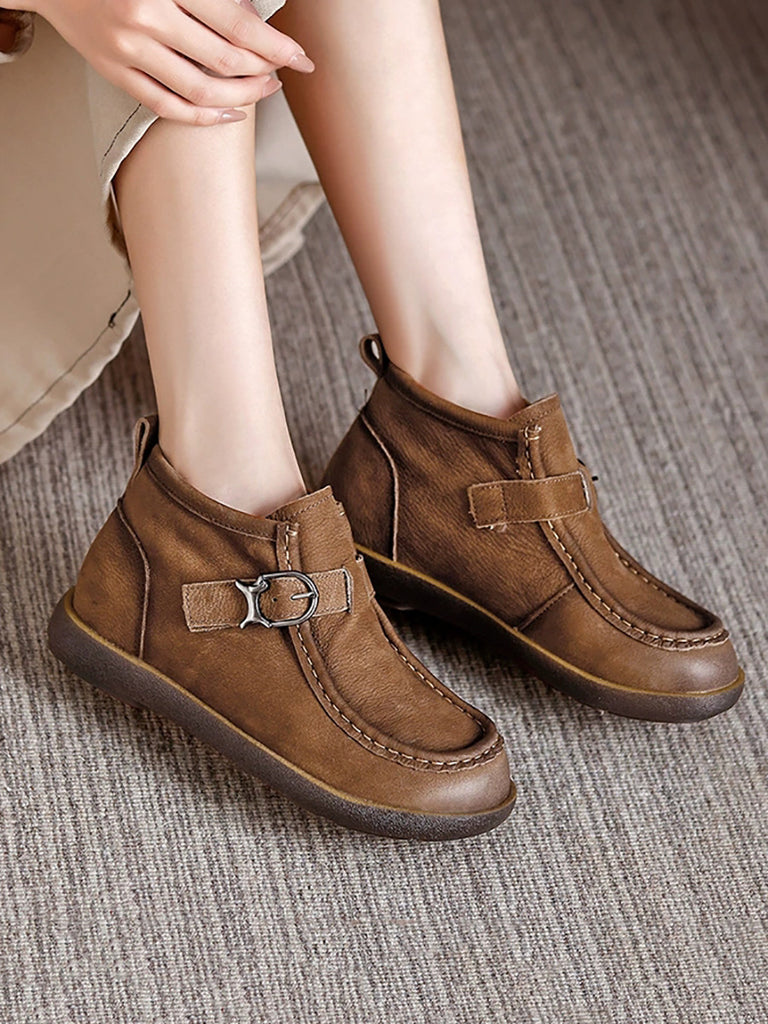 Kvinder Vinter Vintage Ren Farve Flade Ankelstøvler