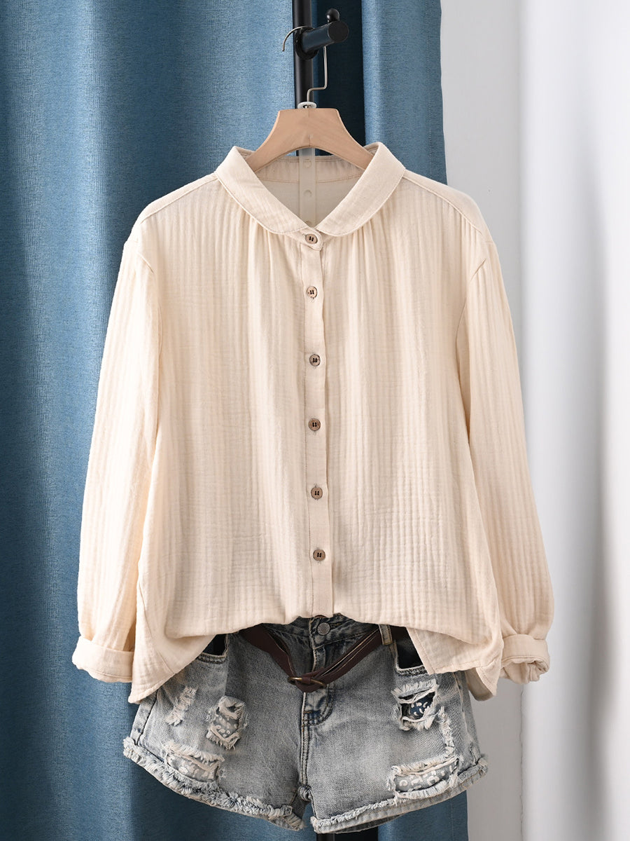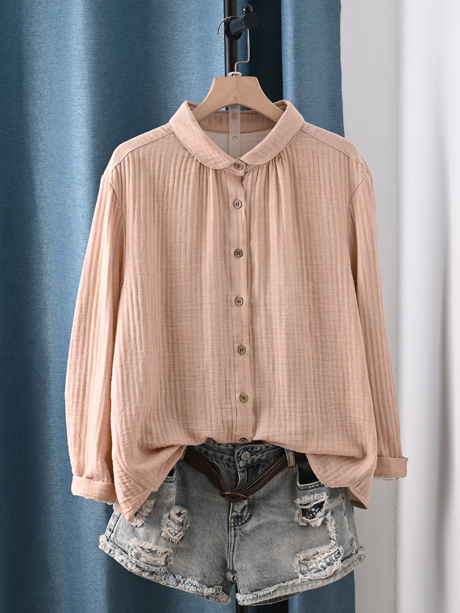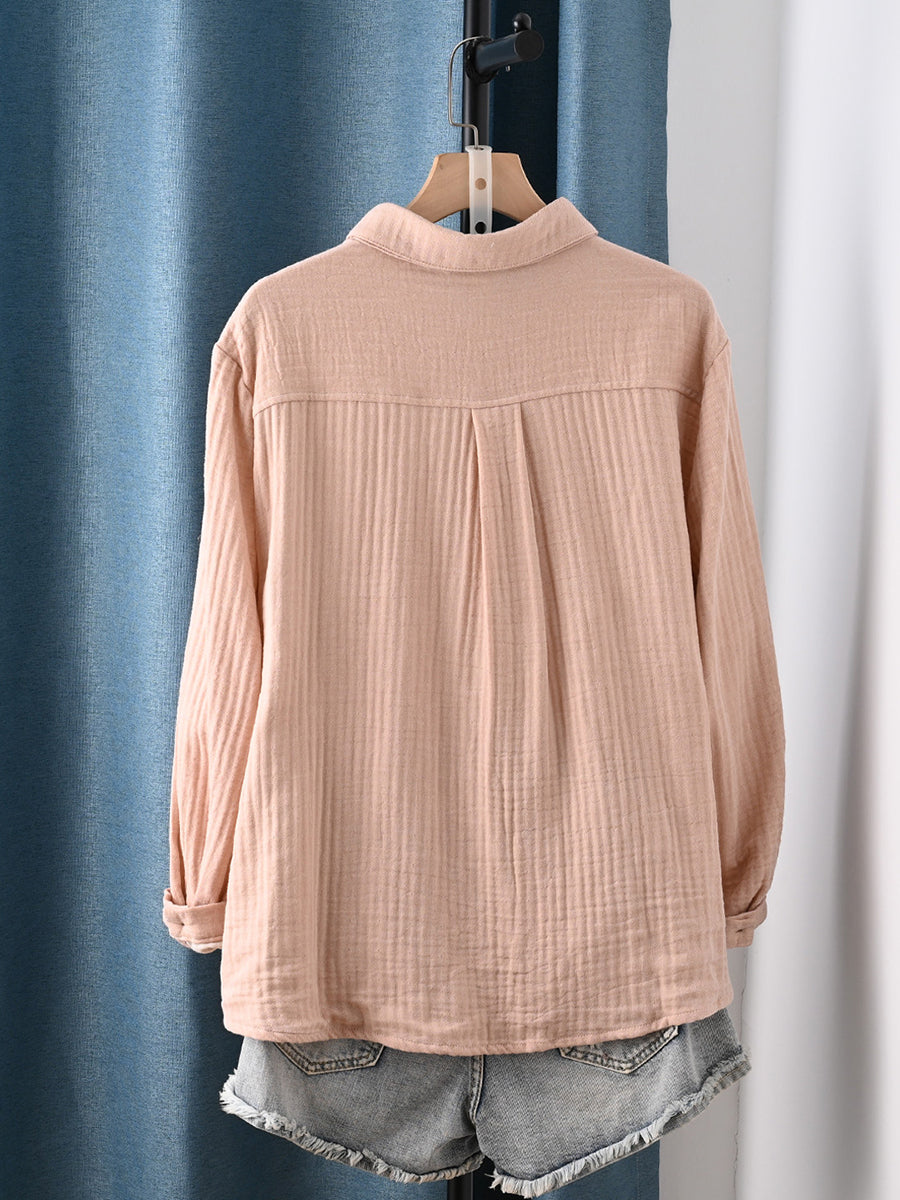 Dame forårsskjorte i kunstnerisk stil i ren farve, 100% bomuld