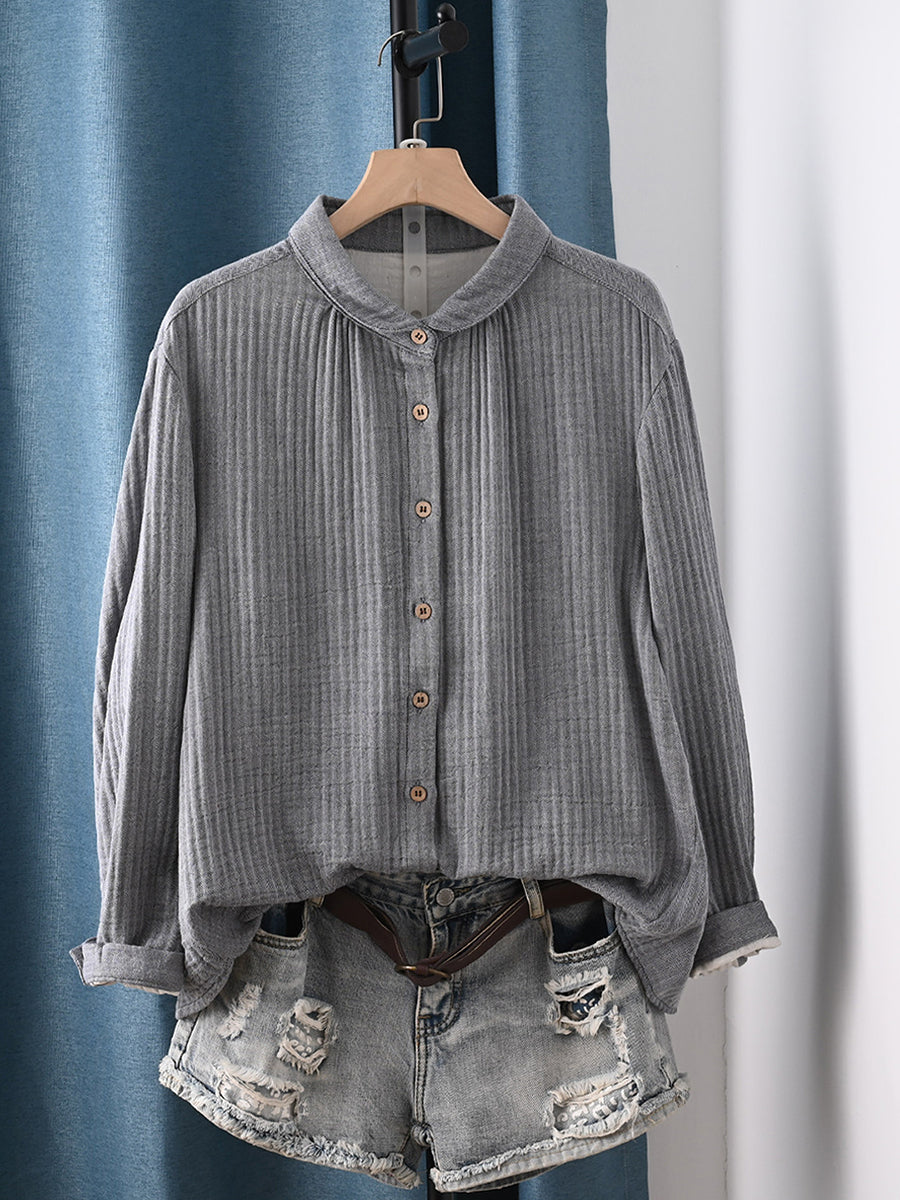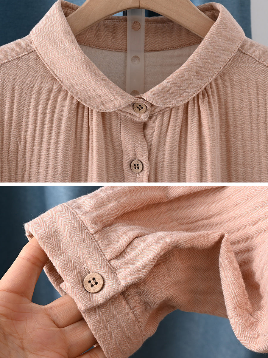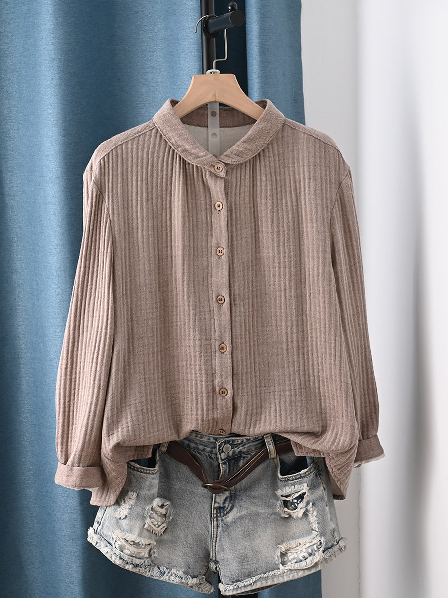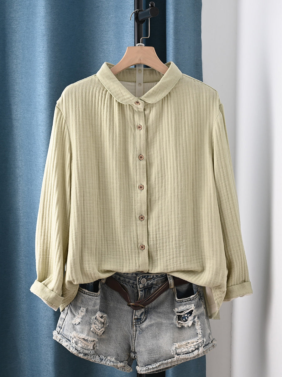 Dame forårsskjorte i kunstnerisk stil i ren farve, 100% bomuld
