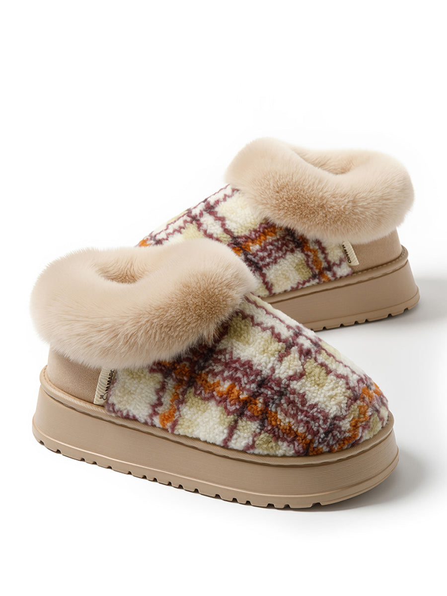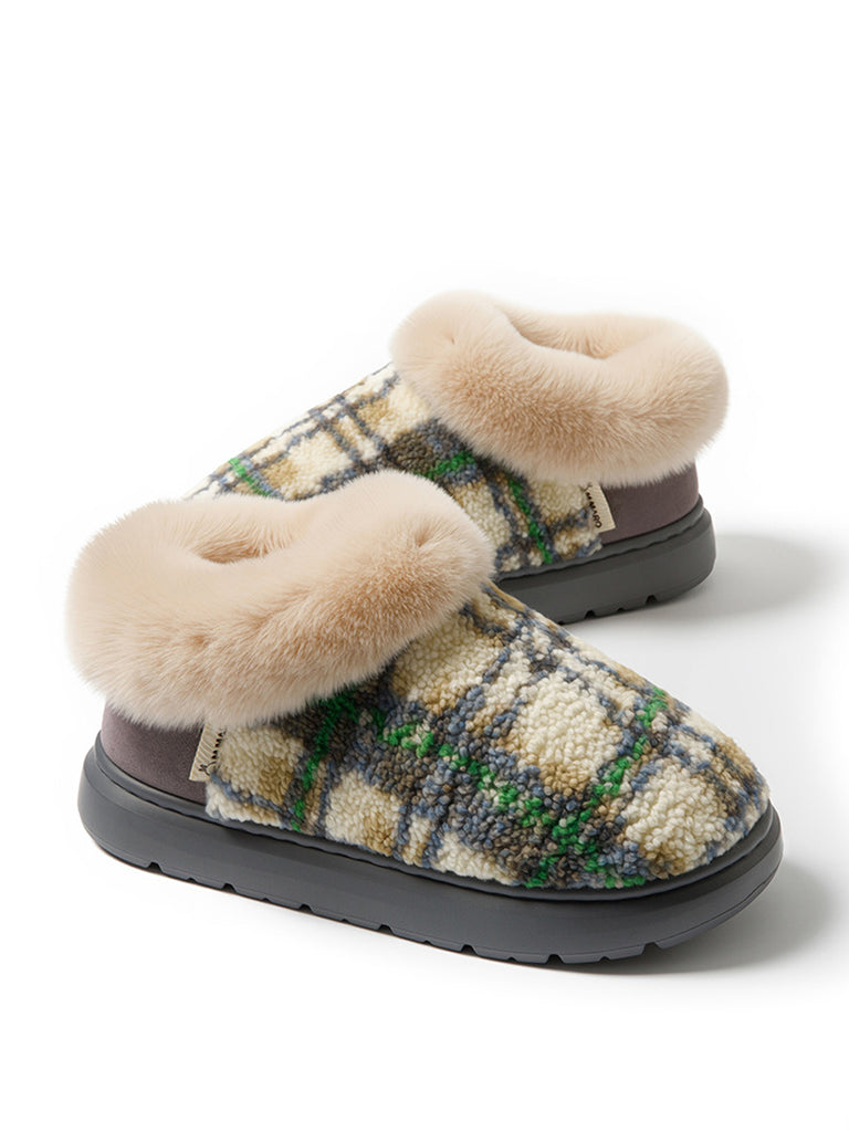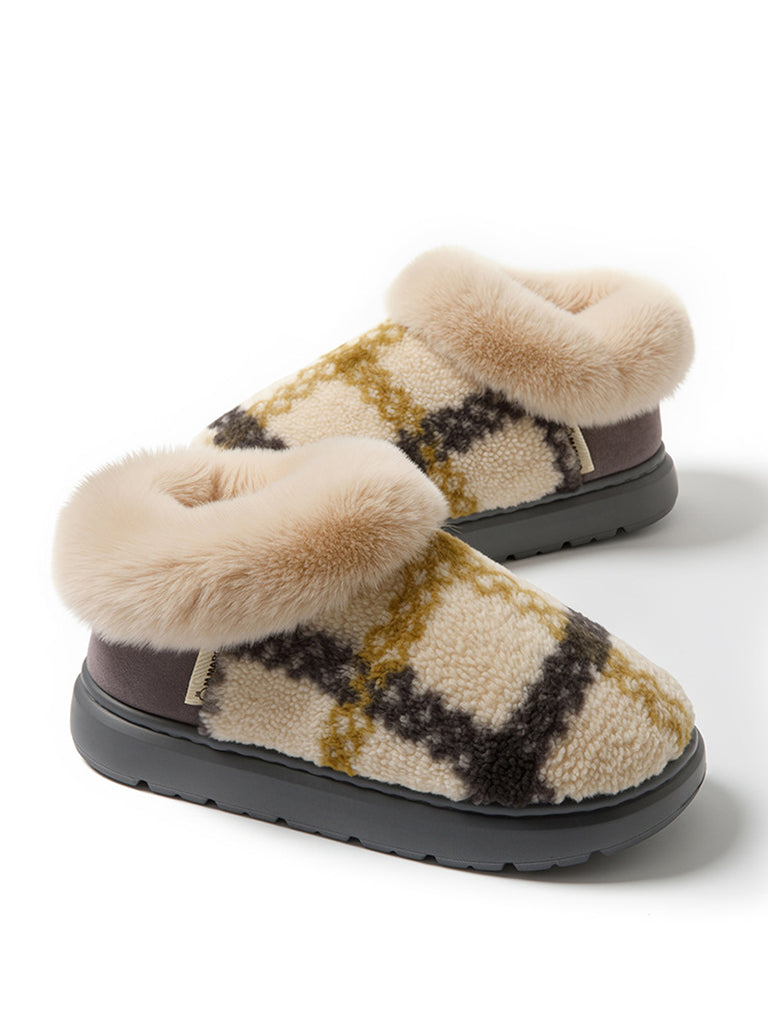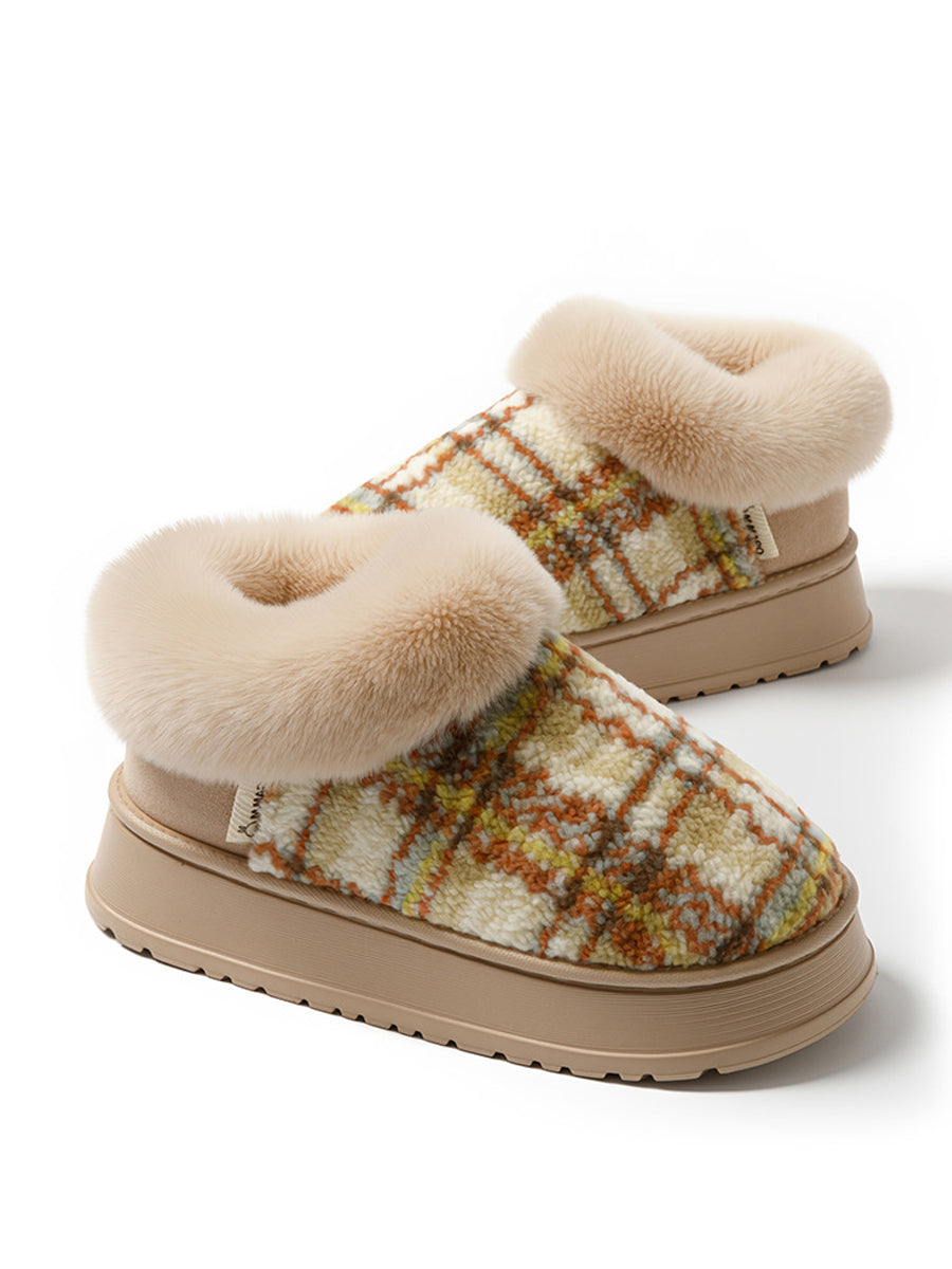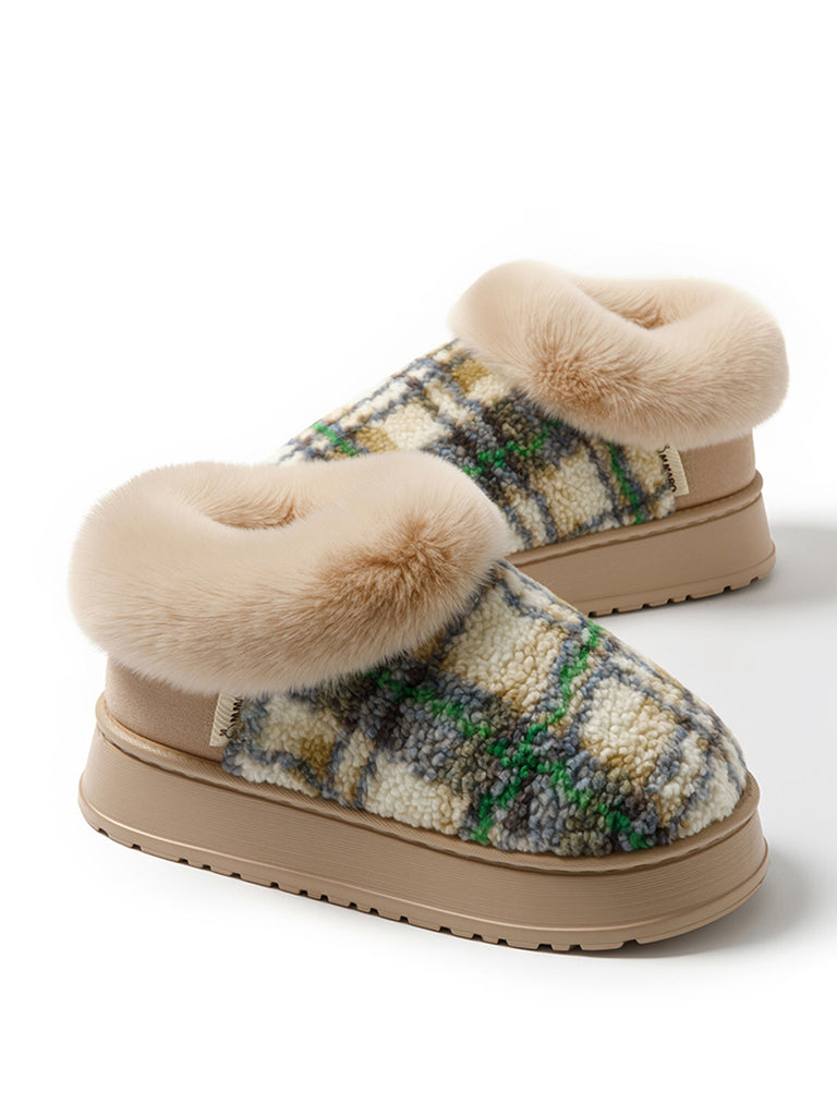 Par Vinter Casual Plaid Indendørs Plys Tøfler