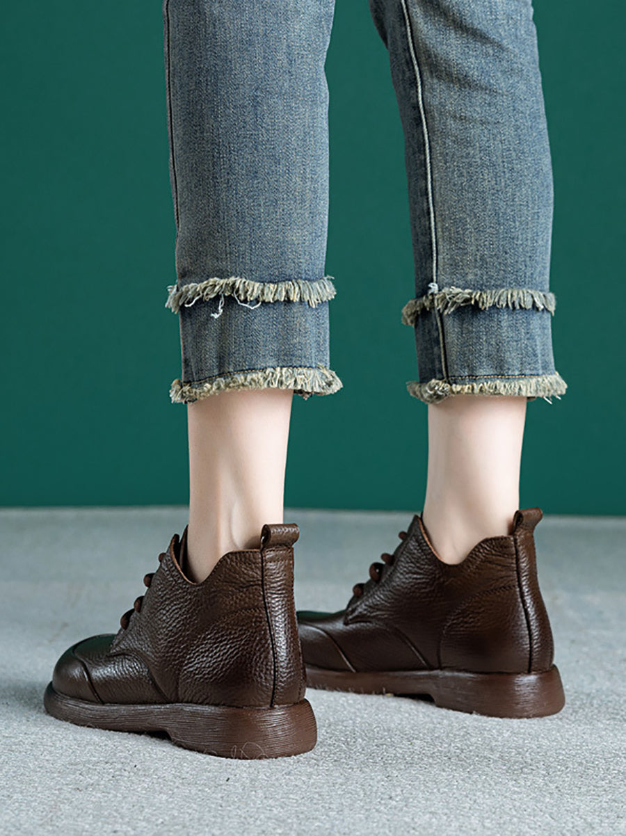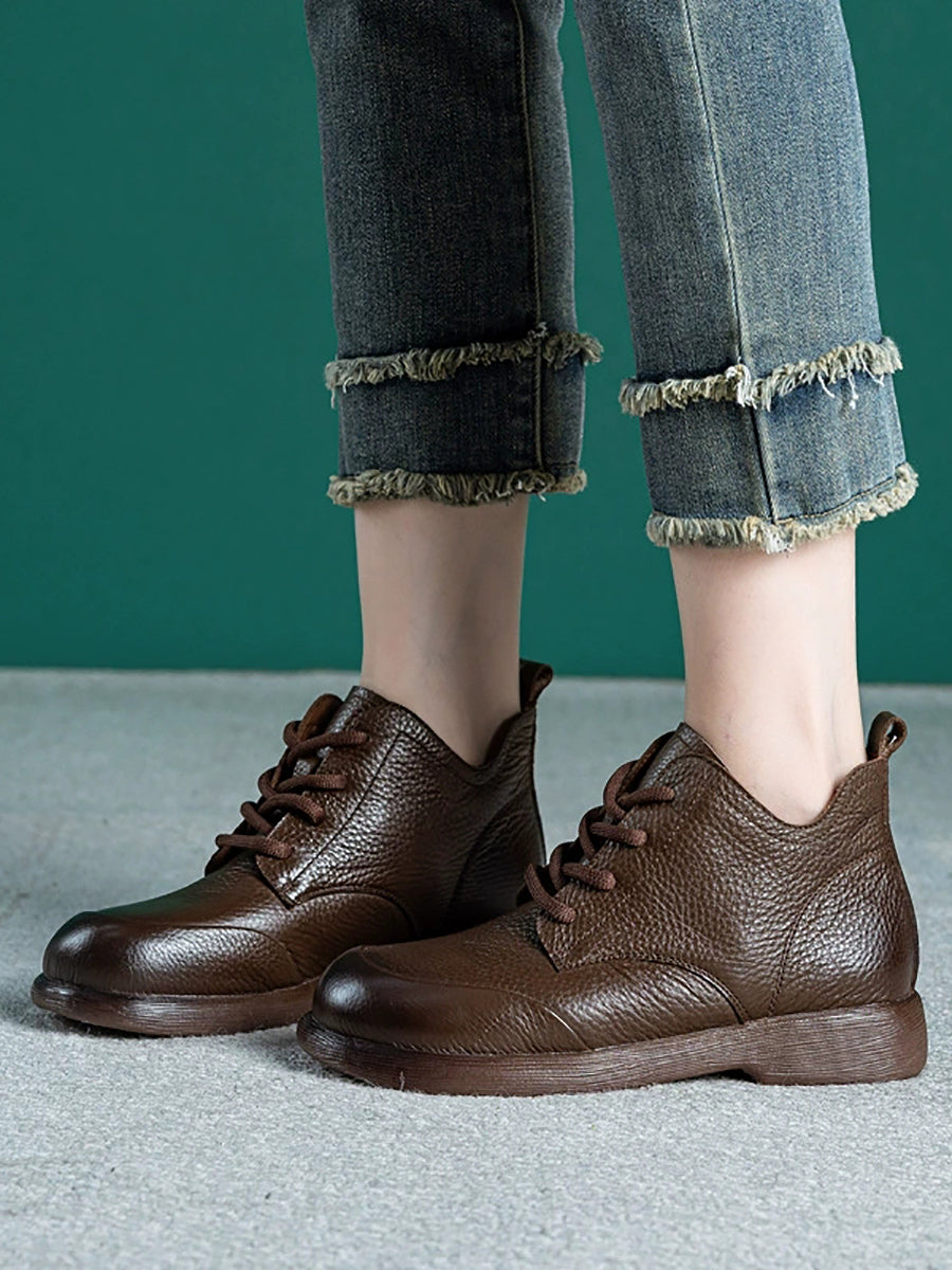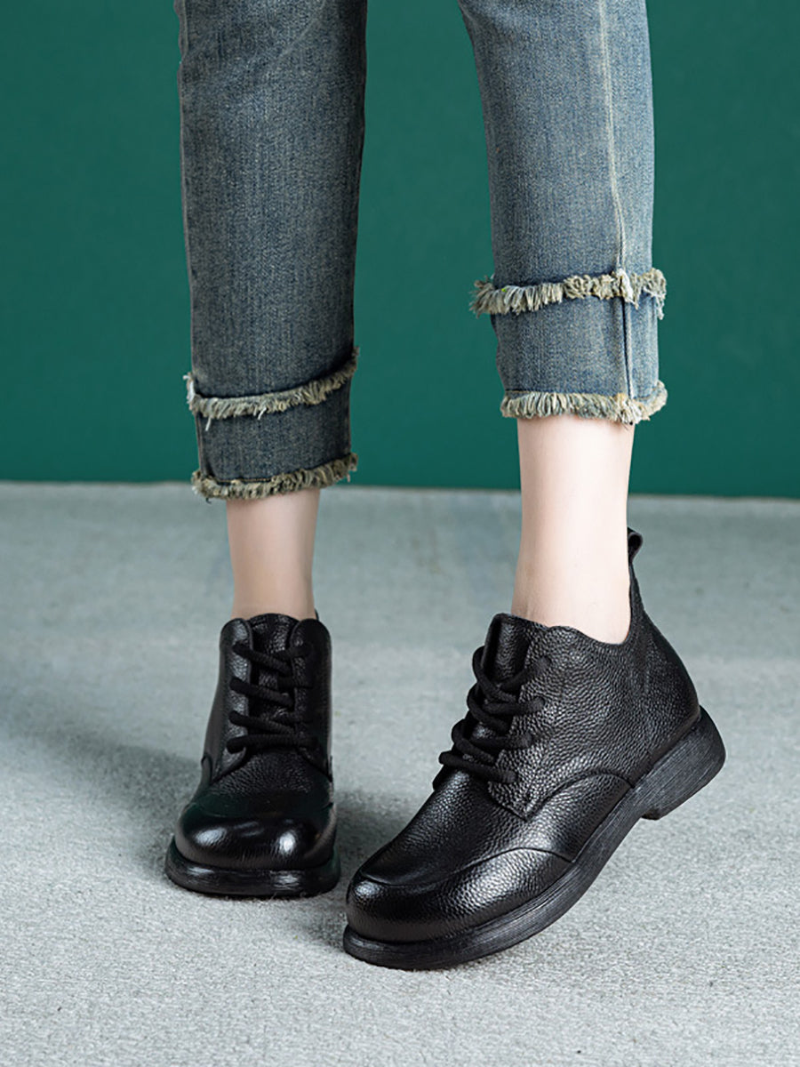 Kvinder Casual Ren Farve Ægte Læder Ankelstøvler