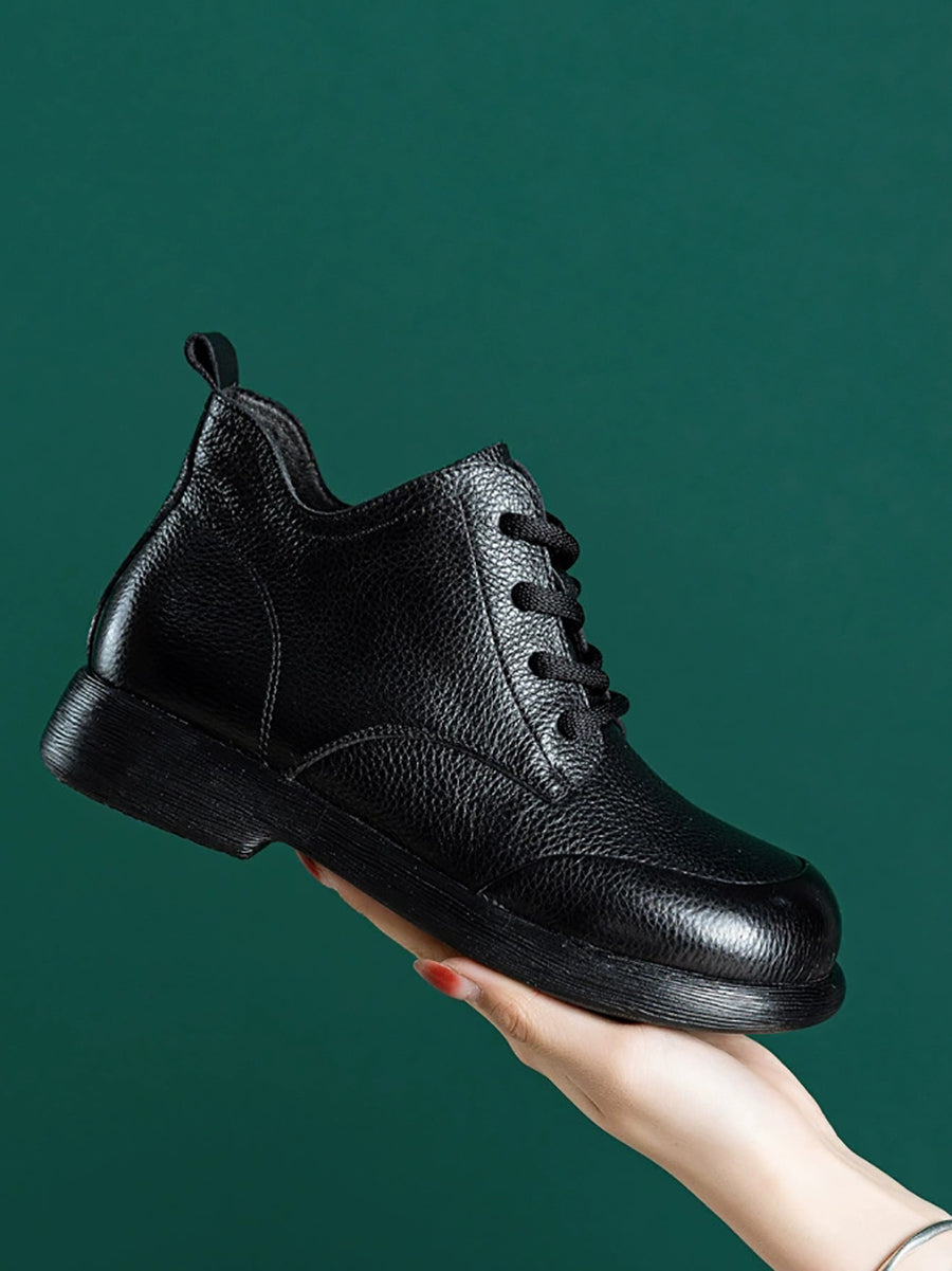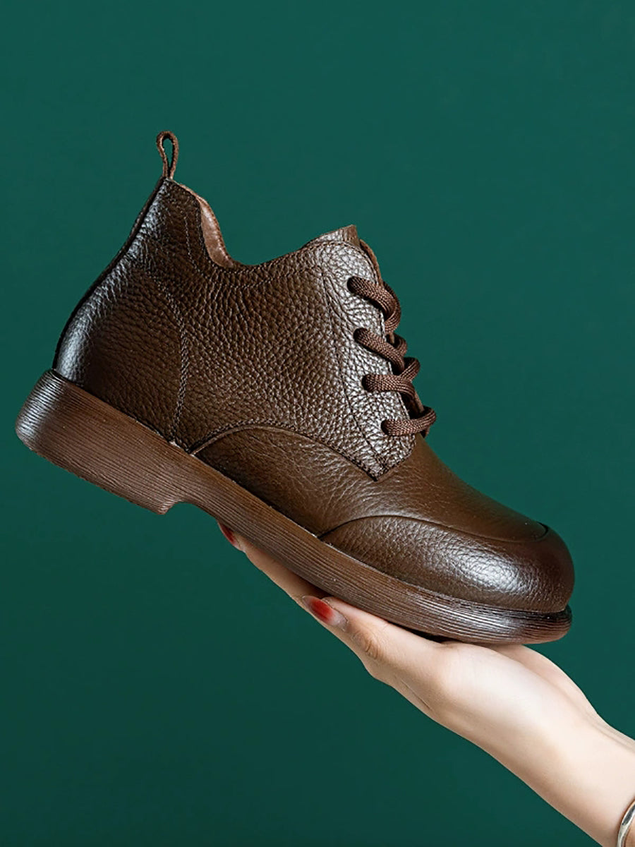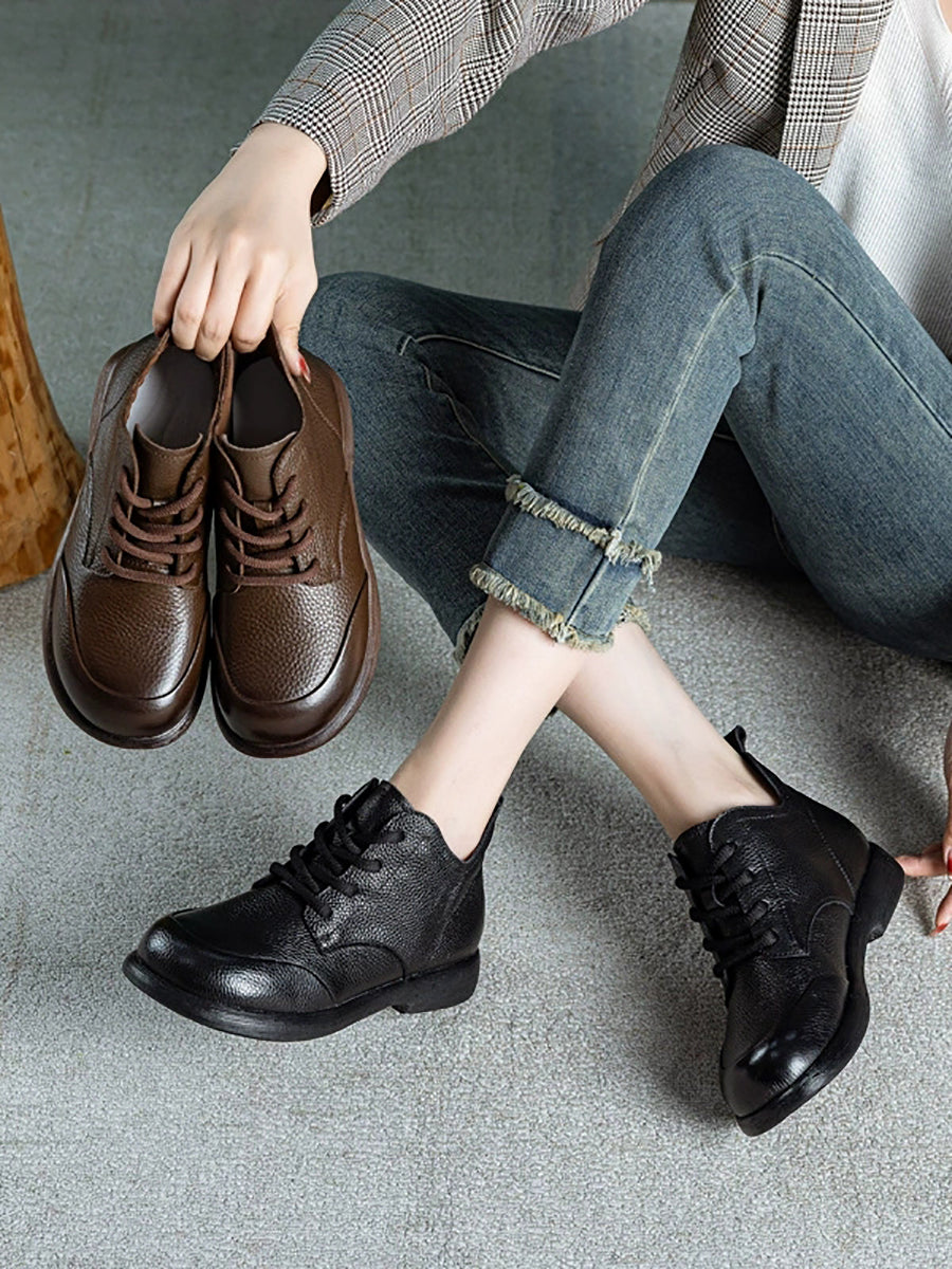 Kvinder Casual Ren Farve Ægte Læder Ankelstøvler