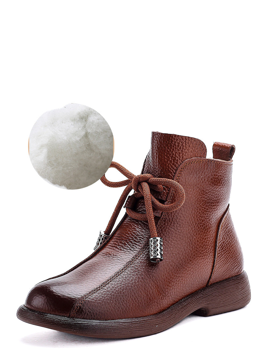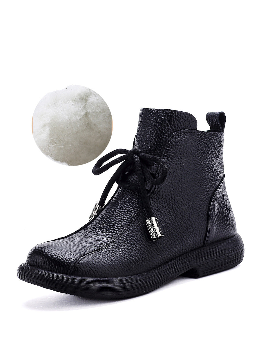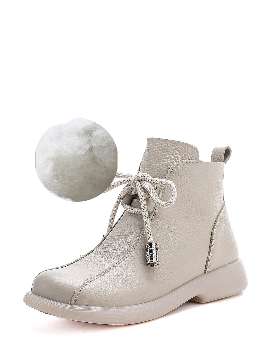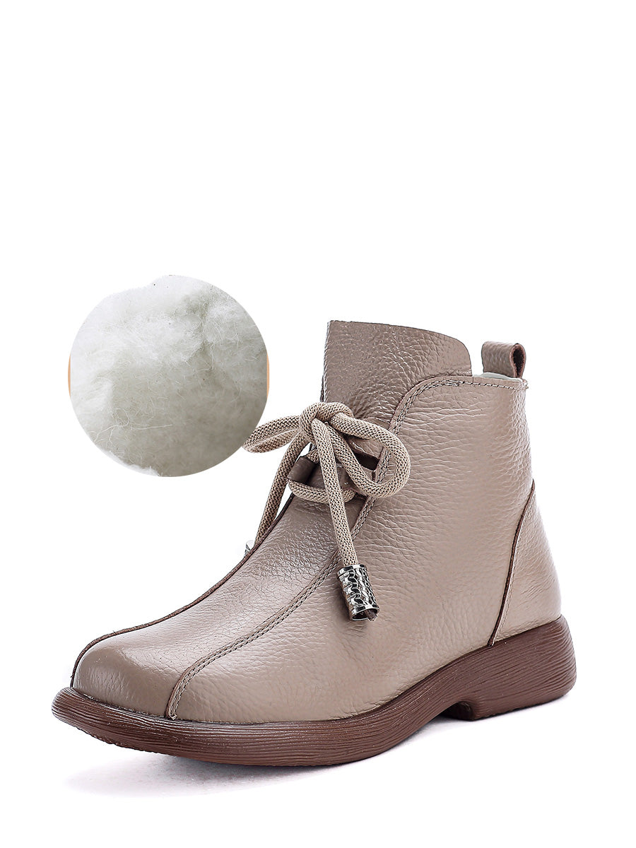 Kvinder Retro Vinter Ankelstøvler i Ægte Læder med Lav Hæl