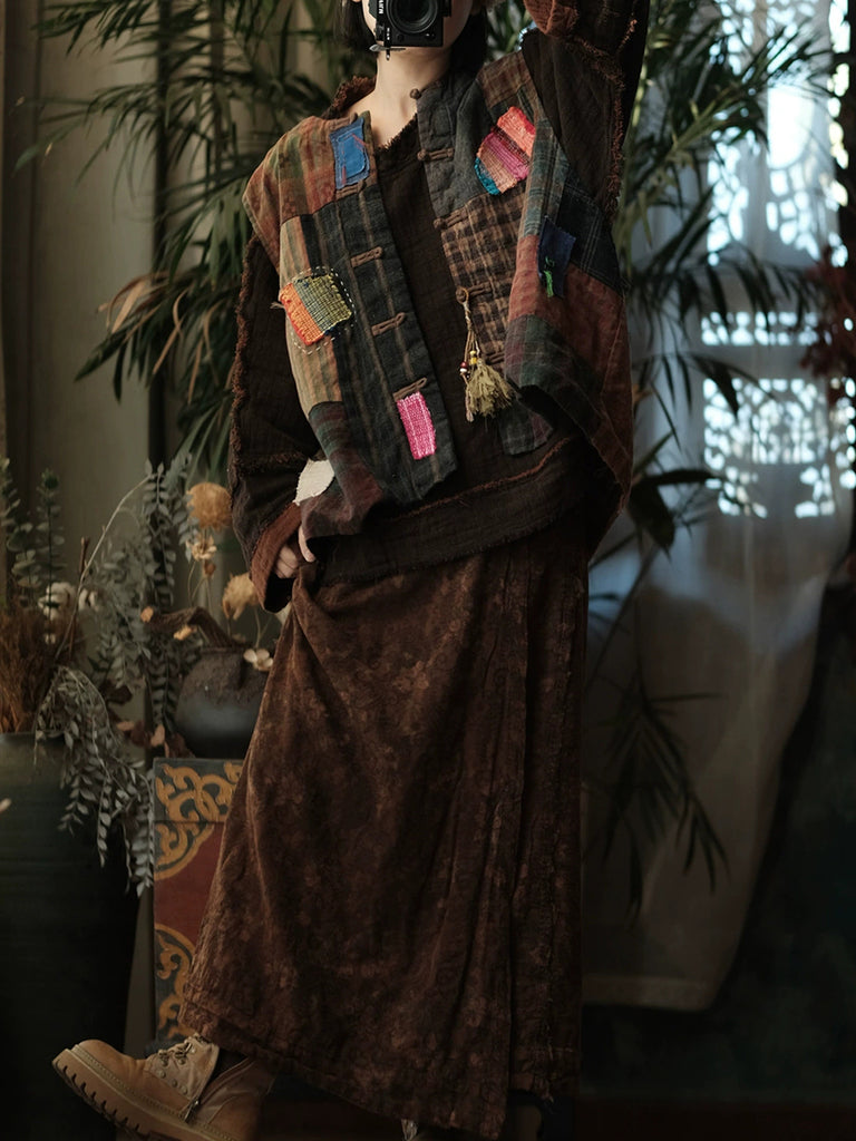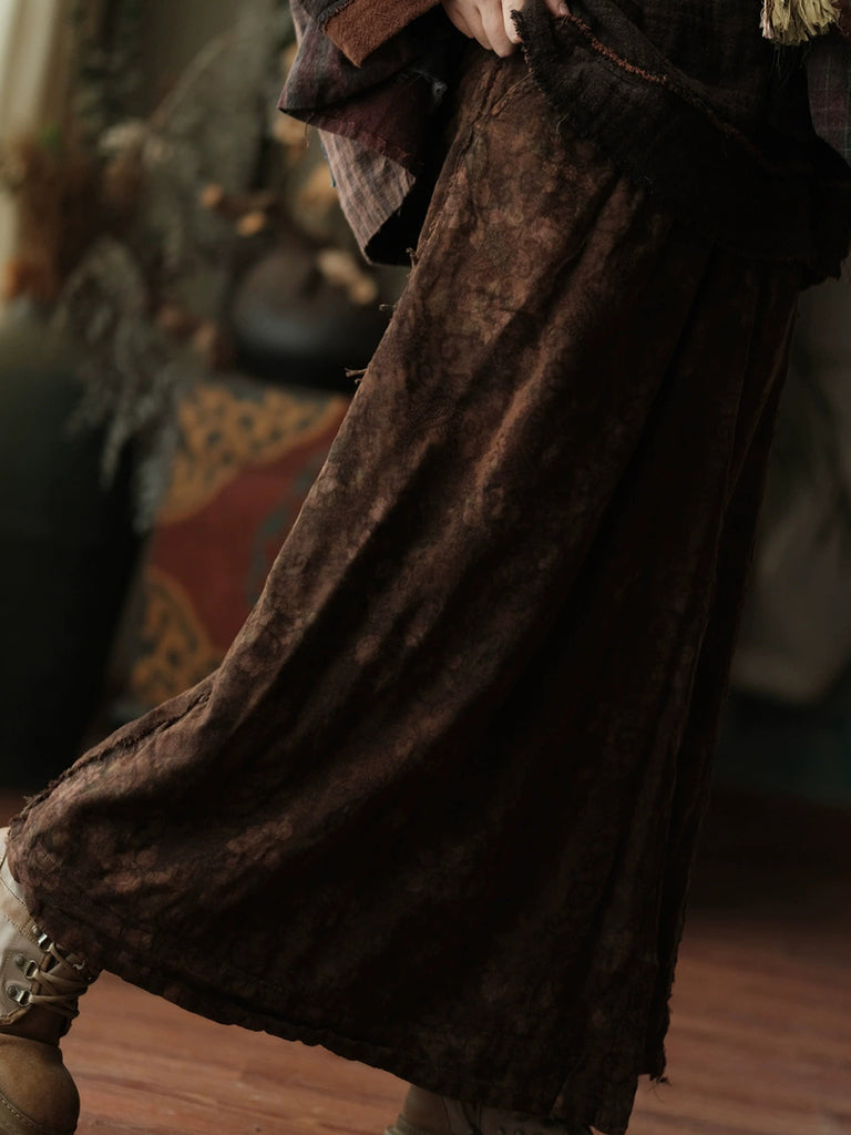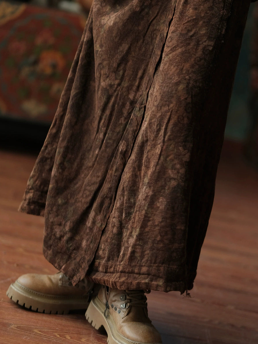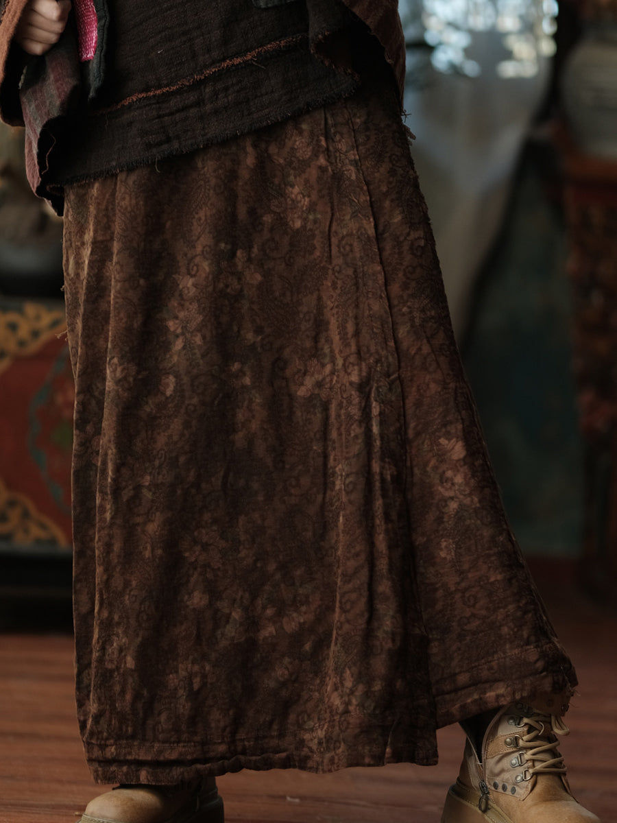 Kvinder Efterår Retro Blomster Bomuld Lige Nederdel