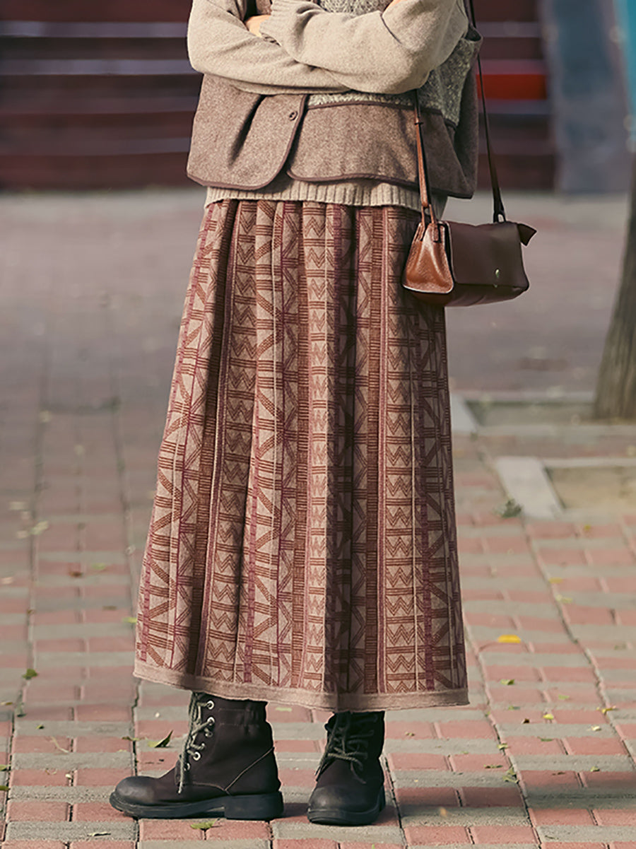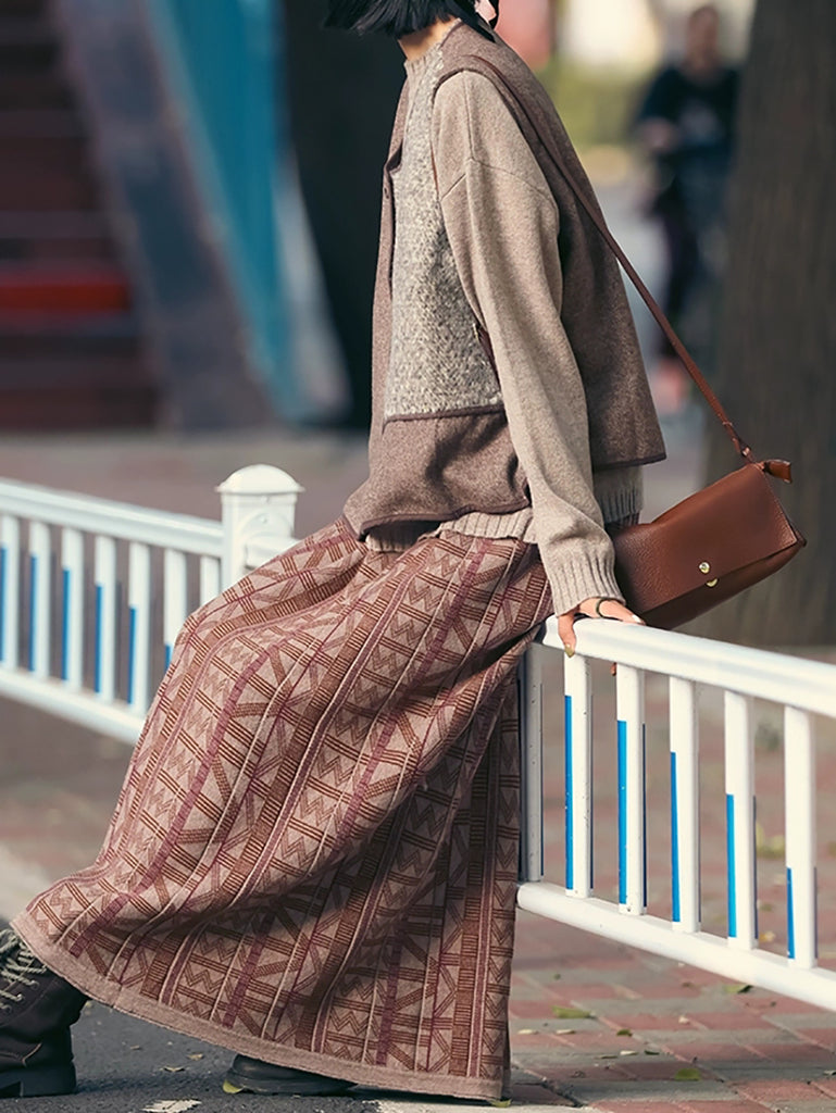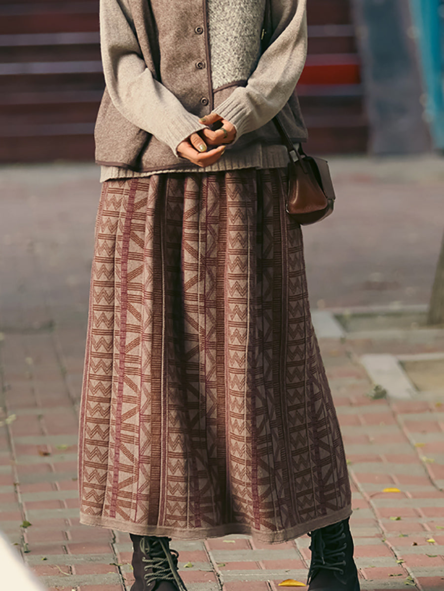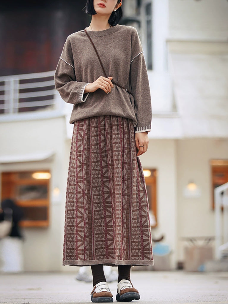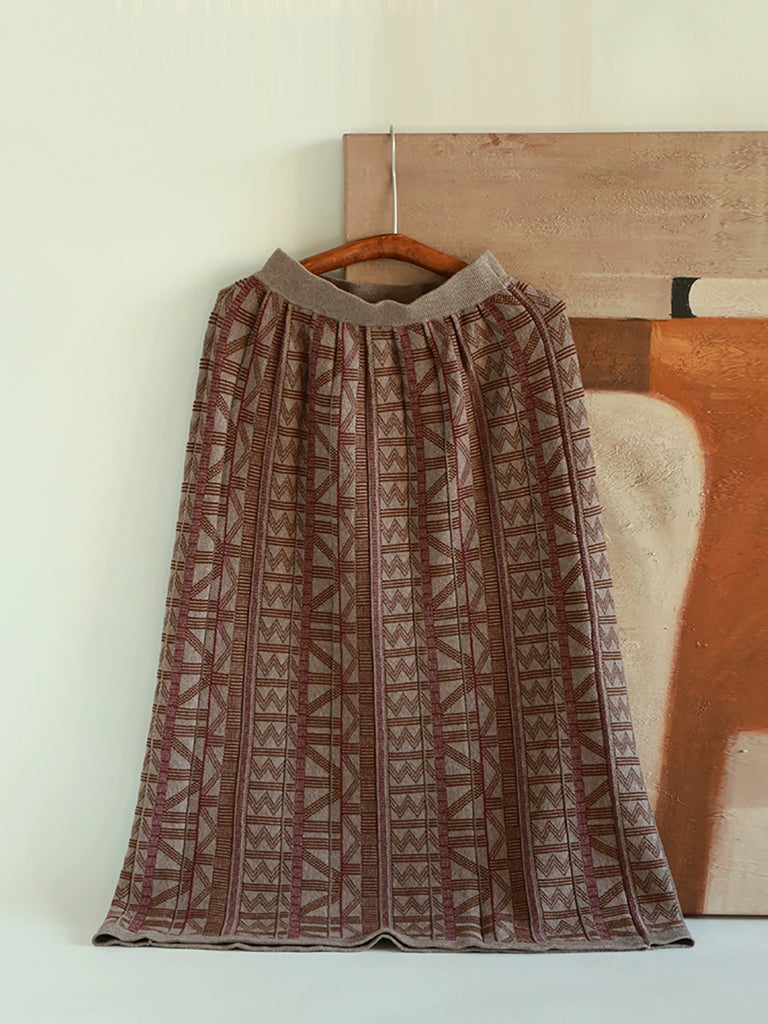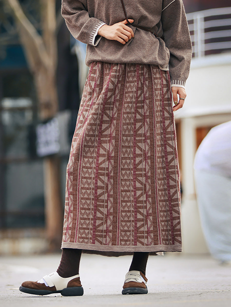 Kvinder Efterår Retro Jacquard A-formet Bomuldsnederdel