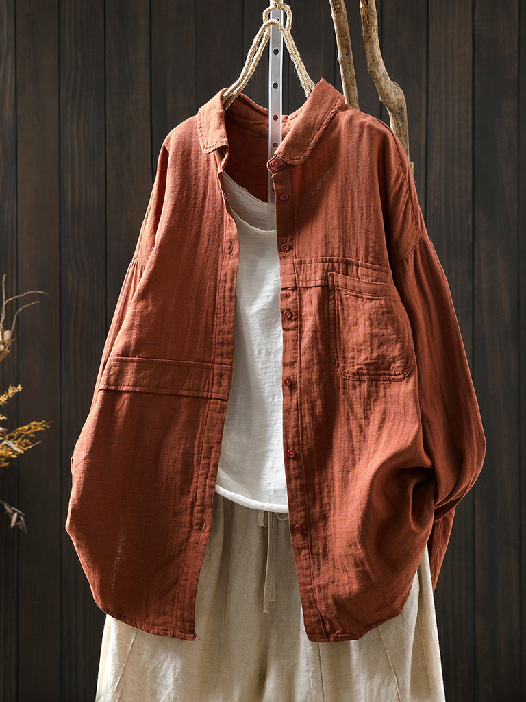 Dameskjorte i ren farve med nedadgående krave i 100% bomuld