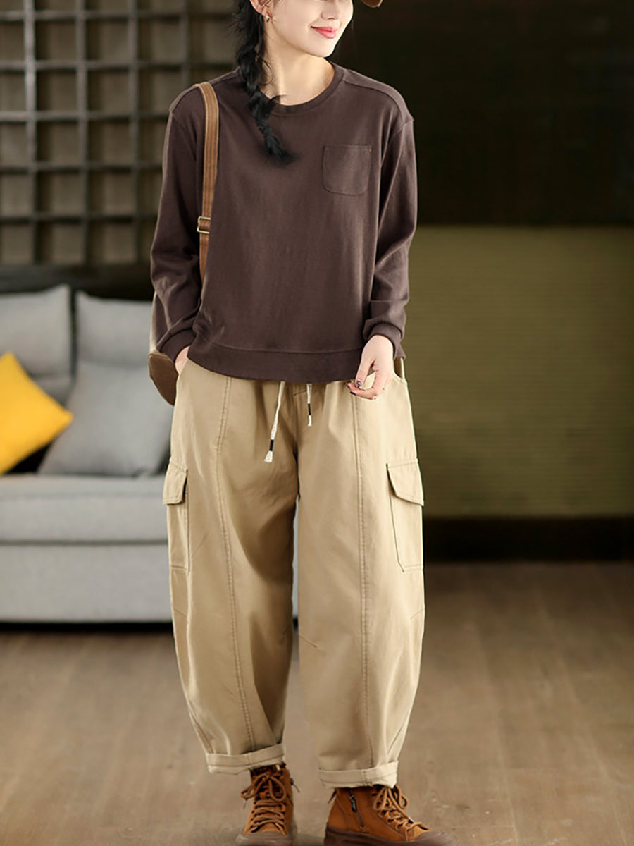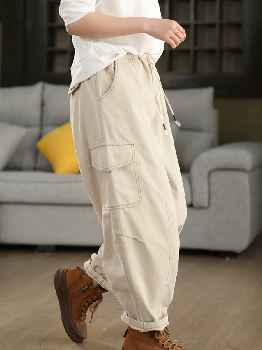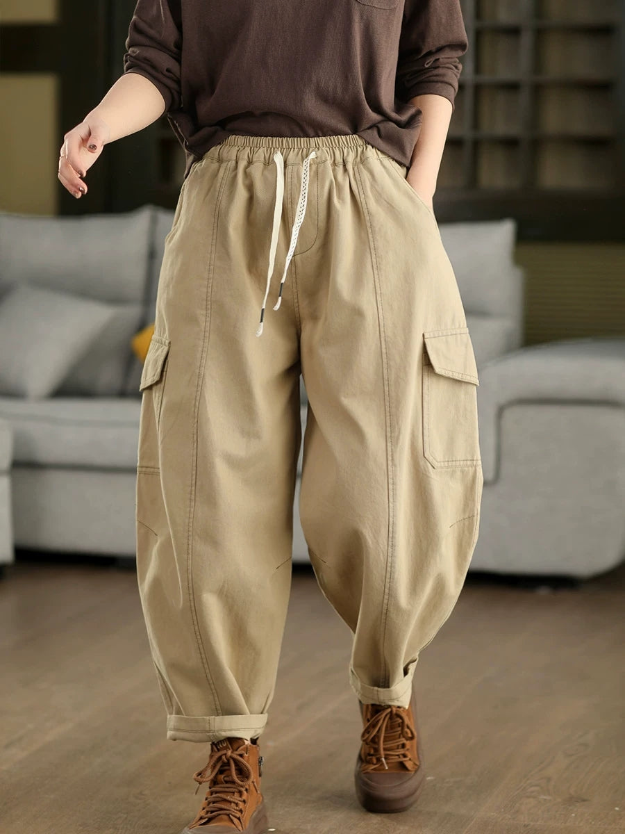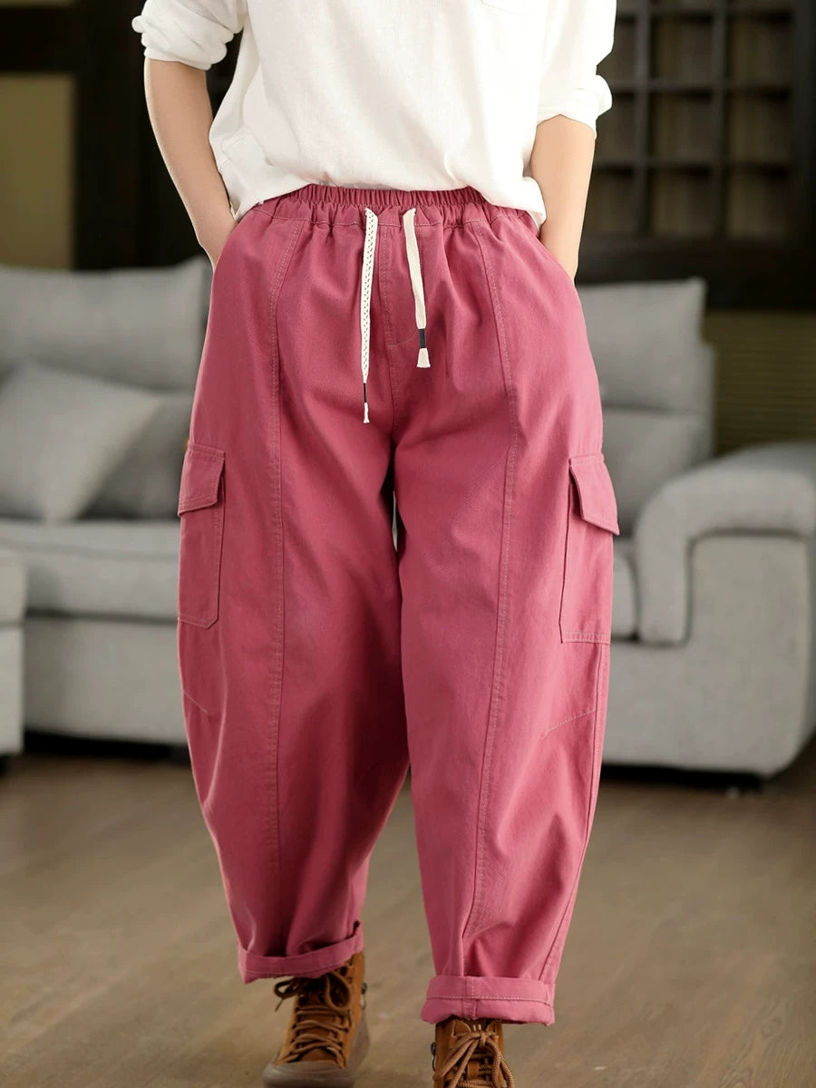 Kvinder Forårs Casual Ren Farve Bomuld Harem Bukser