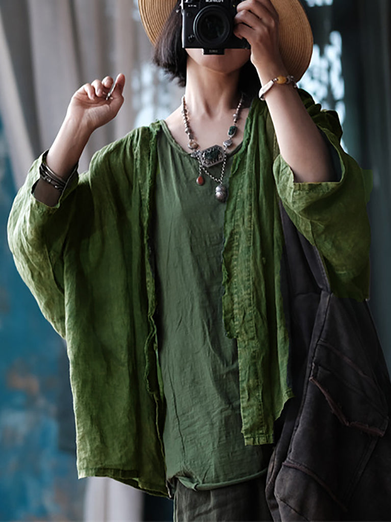 Kvinder Sommer Retro slidt Raw-edge Ramie Shirt Coat
