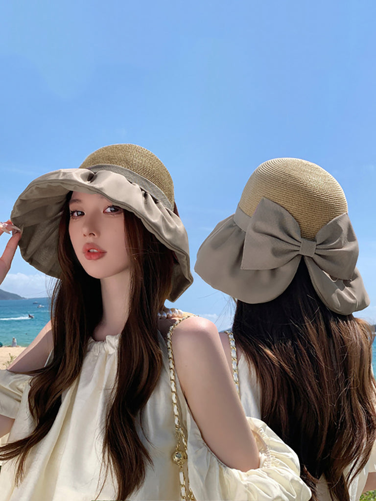 Kvinder Sommer Solbestandig Colorblock Bowknot Hat