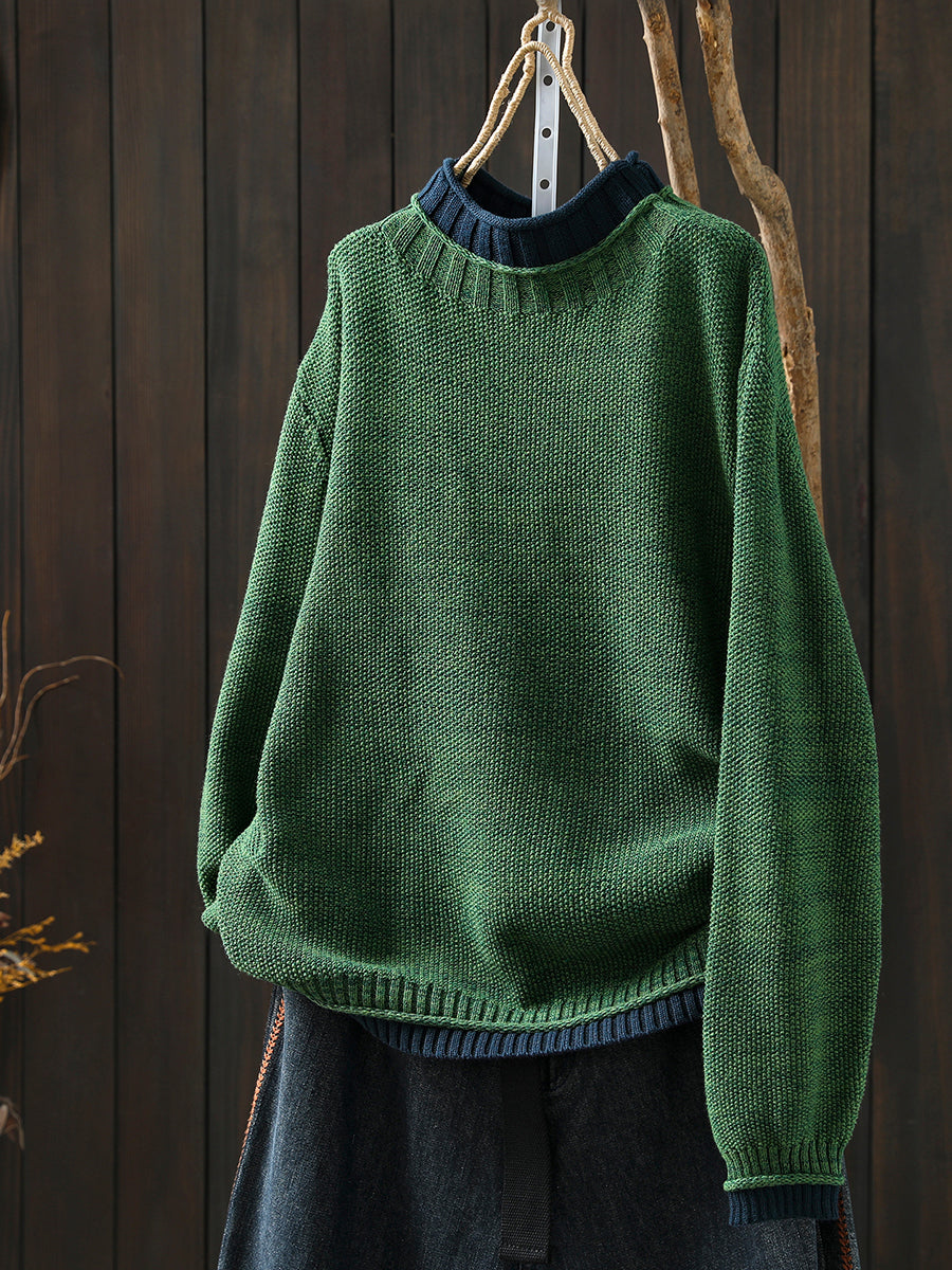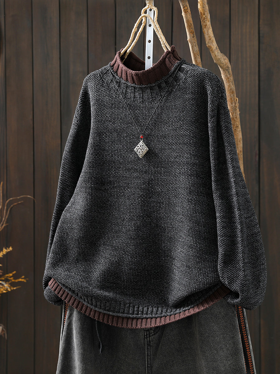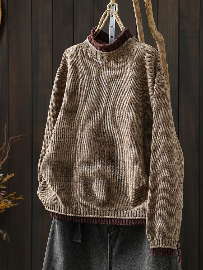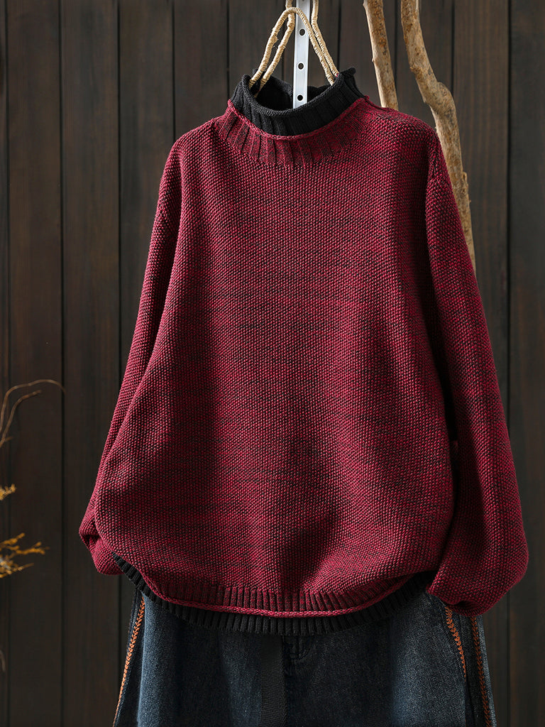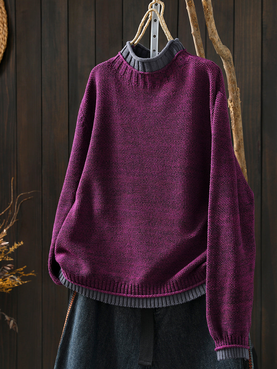 Kvinder Efterårs Kunstnerisk Farveblok Halv-Turtleneck Sweater