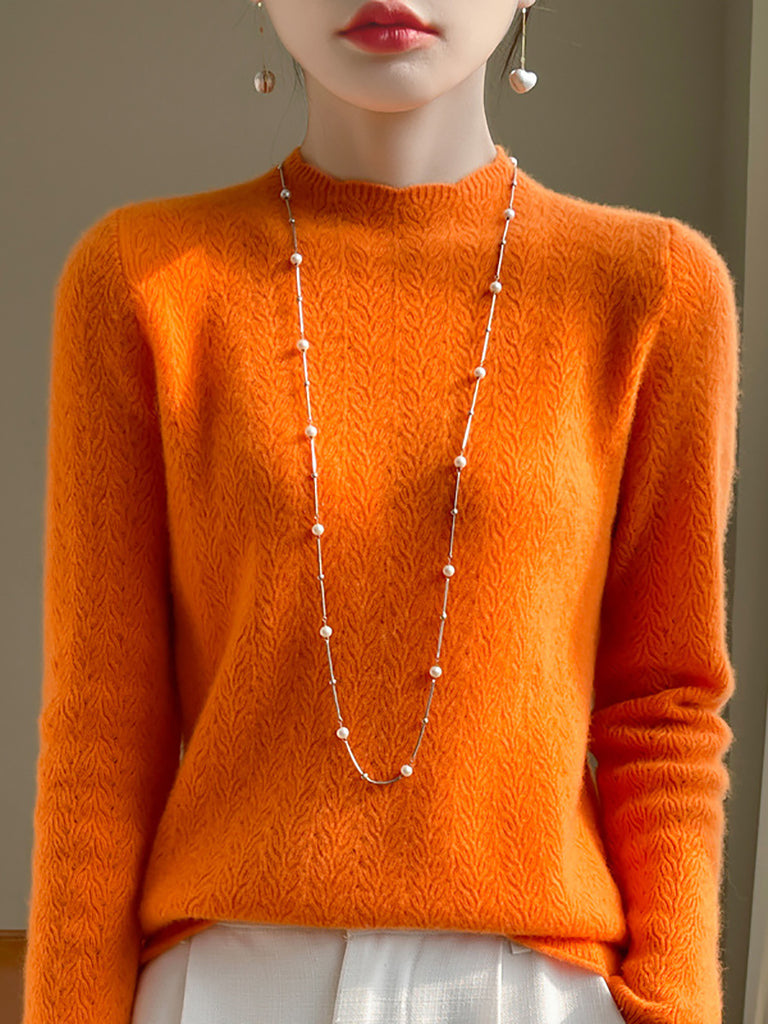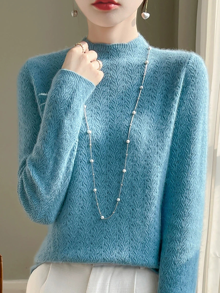 Kvinder Vinter Hæklemønstret Halv-Turtleneck Uldtrøje