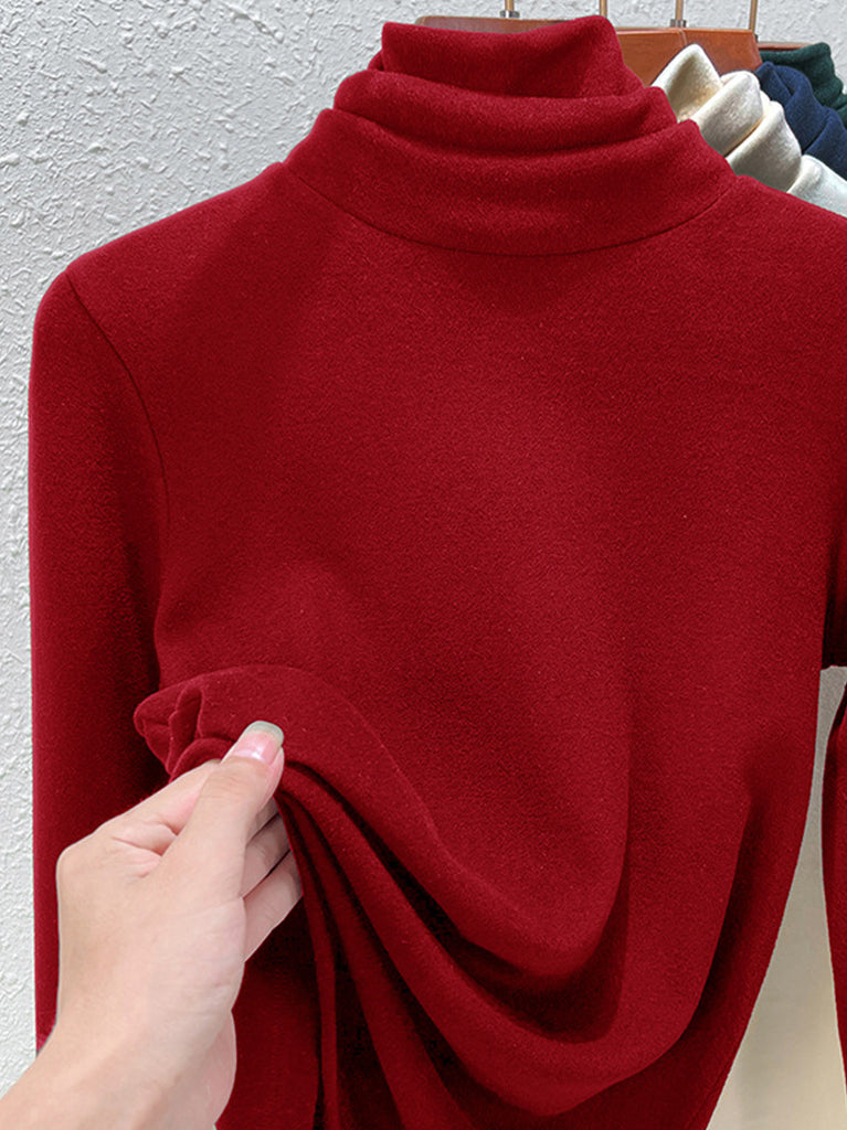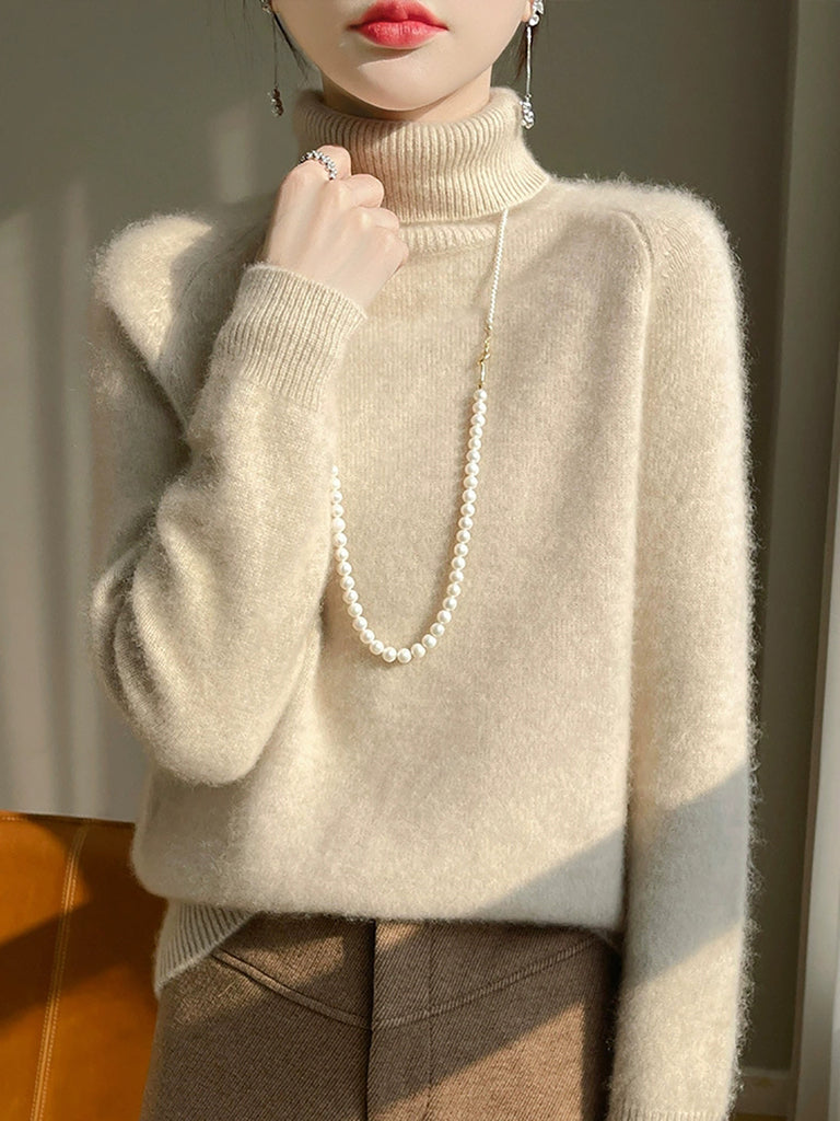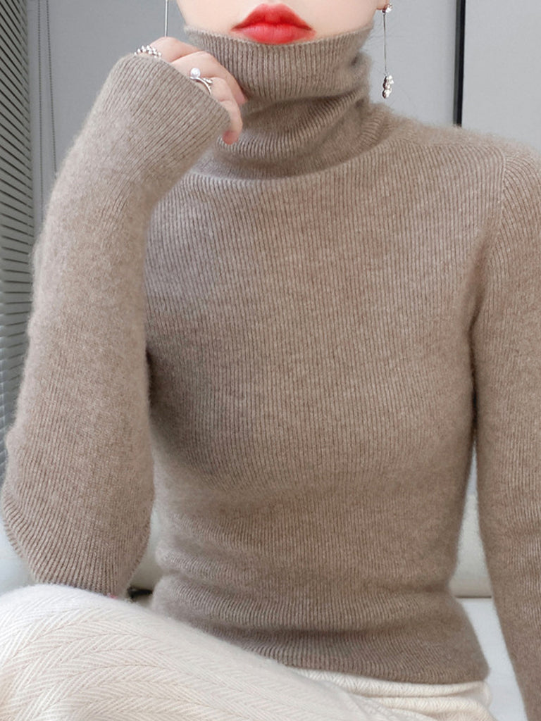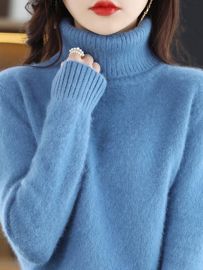 Kvinders vintertrøje i ren farve med rullekrave