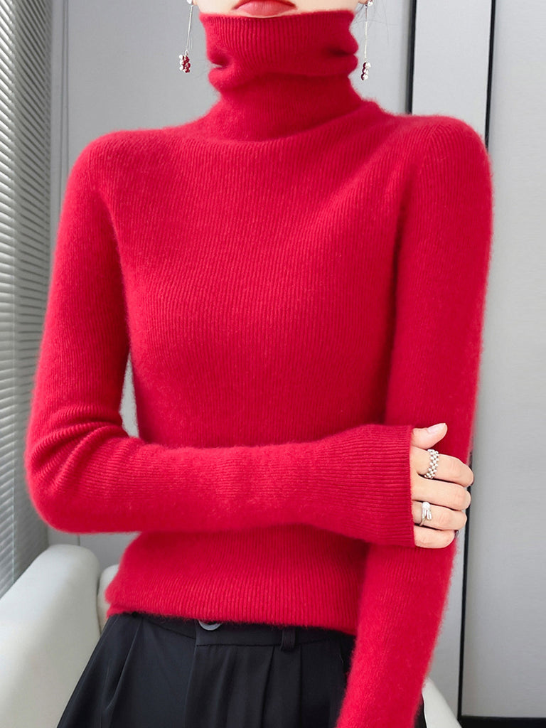 Kvinders vintertrøje med rullekrave i 100% uld og ren farve