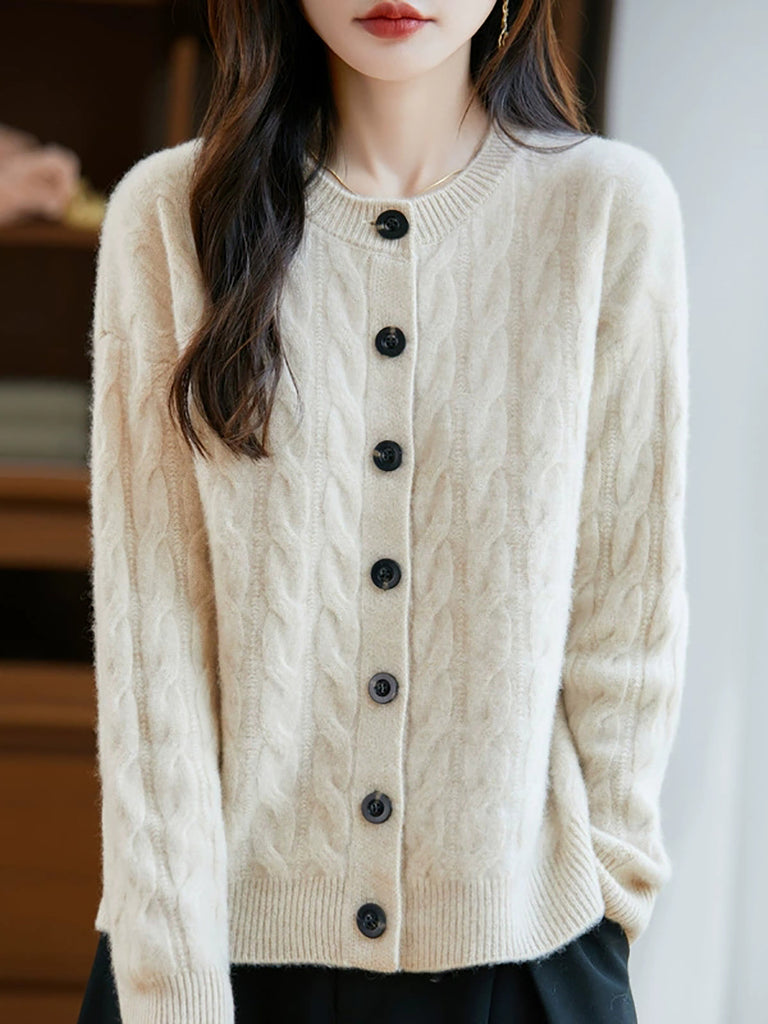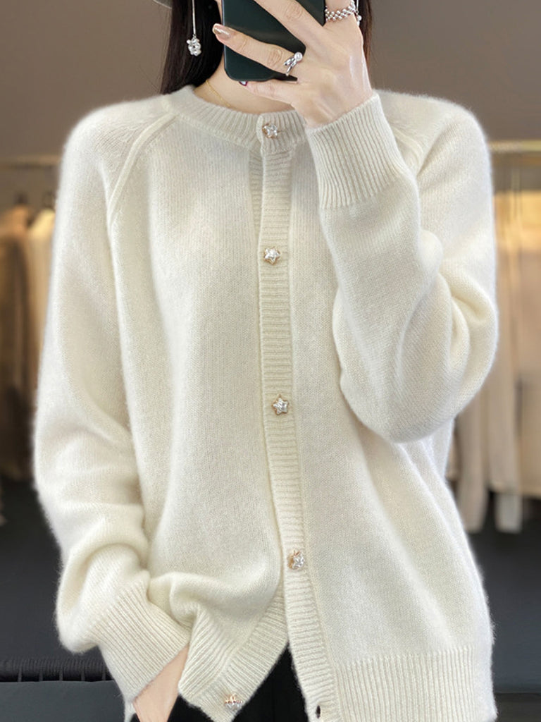 Kvinder Efterår Kunstnerisk Ren Farve Rullekrave Cardigan Sweater