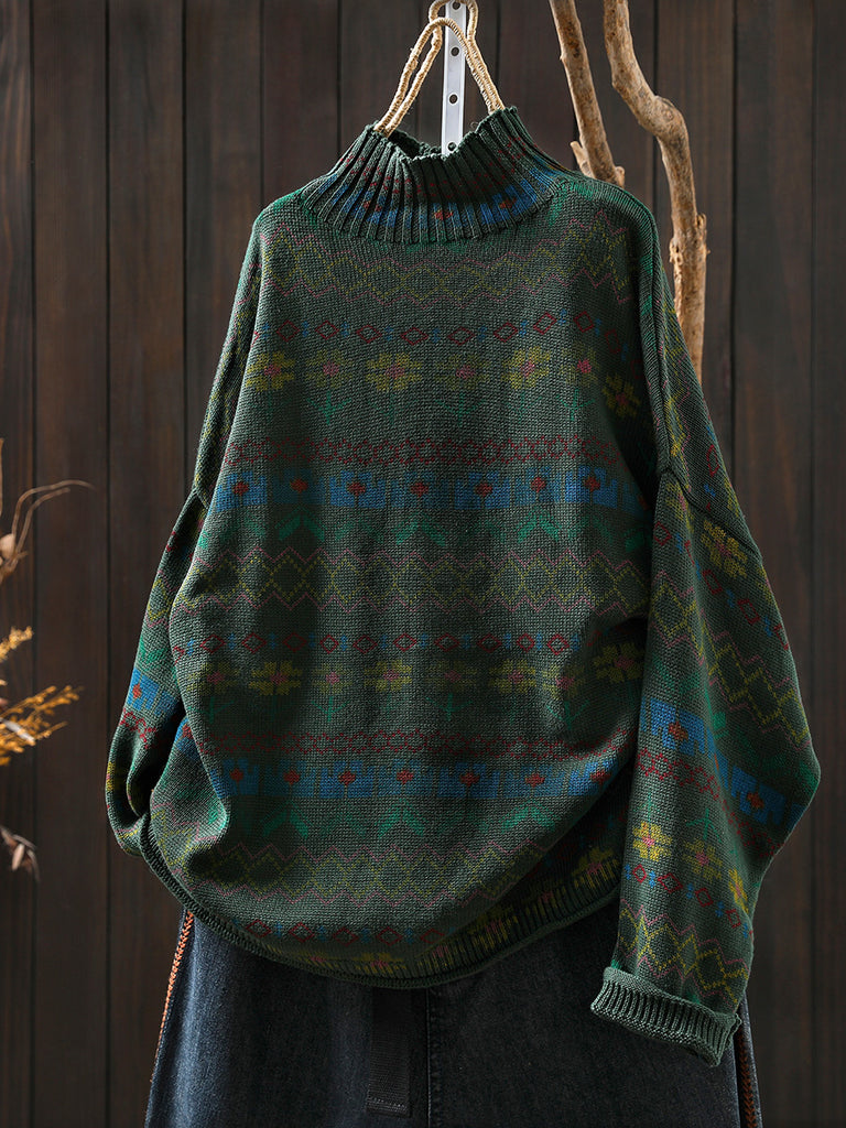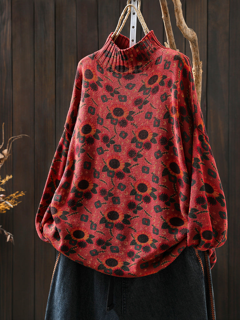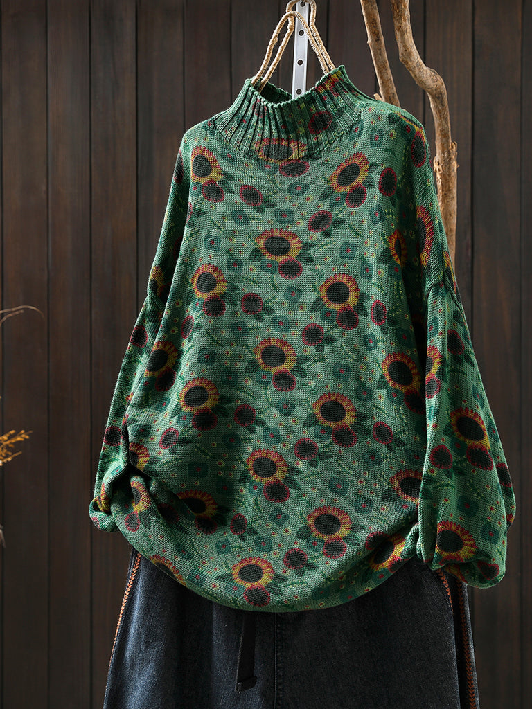 Kvinder Efterårs Kunstnerisk Blomster Halv-Turtleneck Sweater