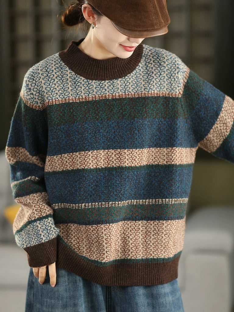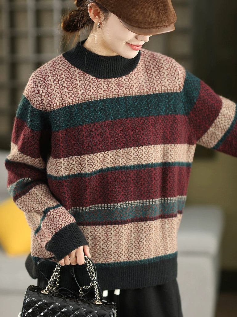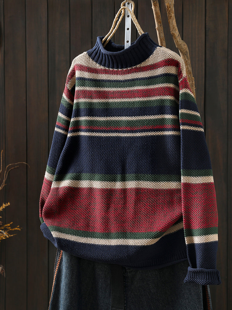 Kvinder Efterårs Kunstnerisk Stribet Halv-Turtleneck Sweater