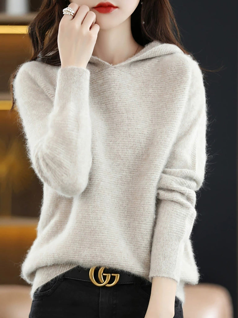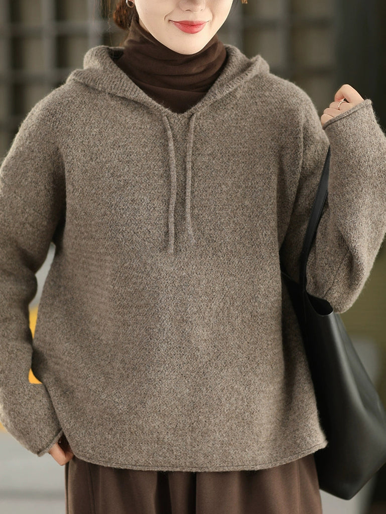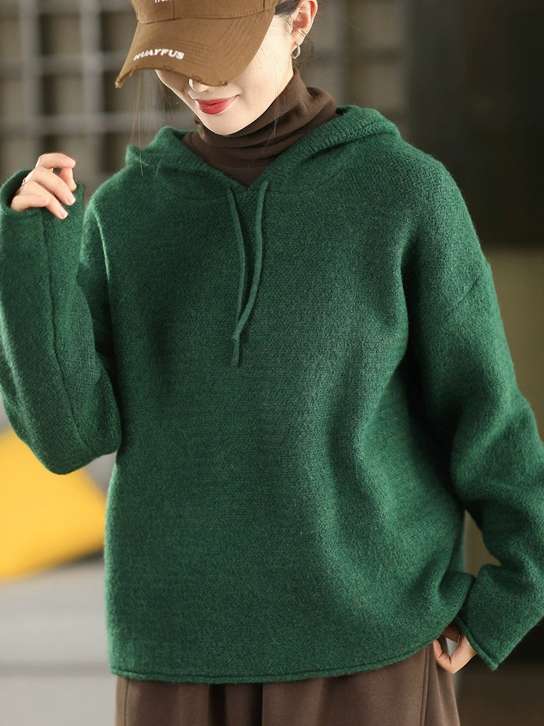 Kvinder Efterår Kunstnerisk Ren Farve Hættetrøje