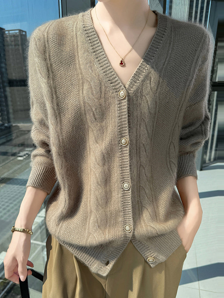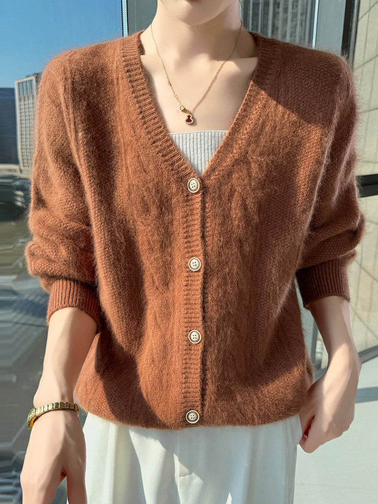 Kvinder Efterår Casual Ren Farve V-hals Sweater