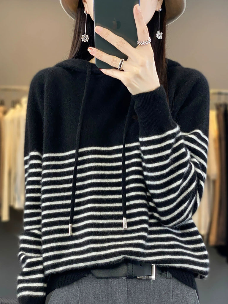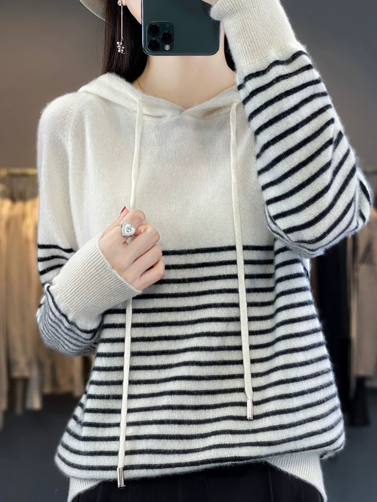 Kvinder Vinter Casual Stripe Hættetrøje