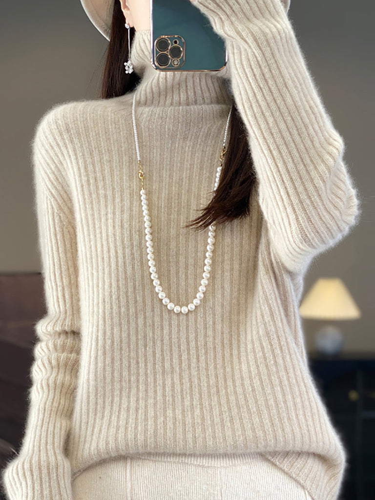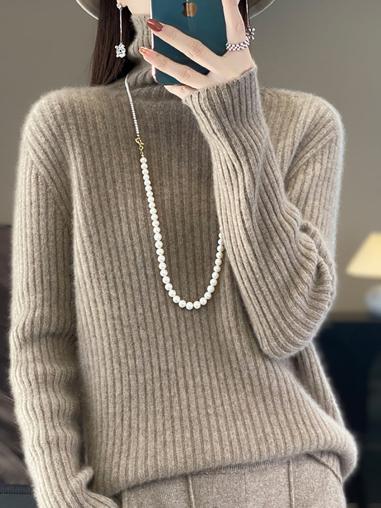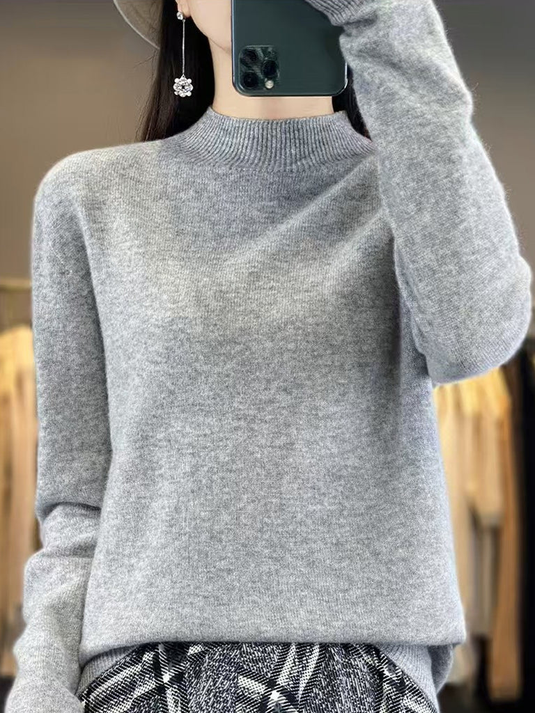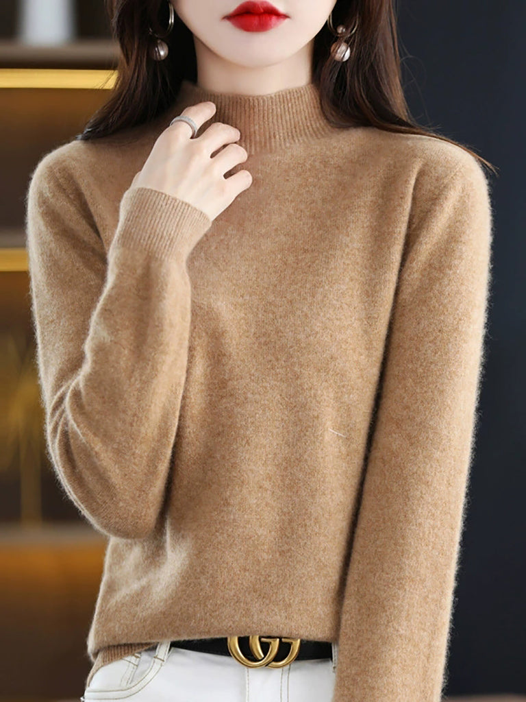 Kvinder Vinter Halv-Turtleneck Strikket Uldtrøje